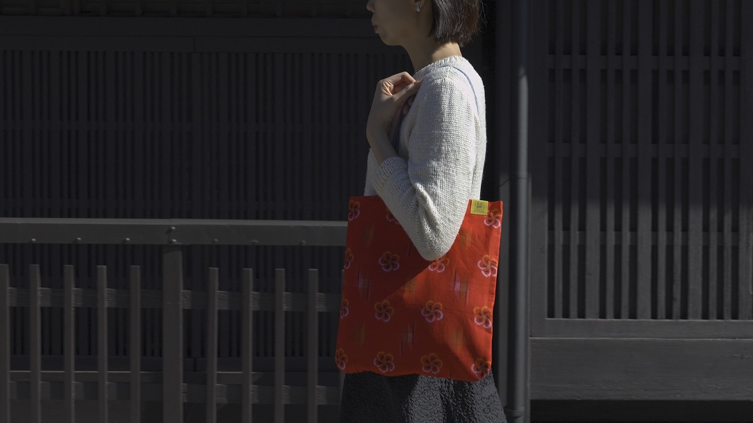 室町呉袋の「室町」は、京都中心地を南北に走る室町通りが由来。室町通りは、江戸時代から現在もなお、全国有数の呉服商の立ち並ぶ通りです。「呉袋」は、呉服用の反物生地から作った袋を縮めて「呉袋」としました。 糸づくりから織り、染めなど、日本の工芸技術の結集した着物生地で作ったバッグが、現代の暮らしをより鮮やかに彩る一品になるよう、想いを込めて作っています。