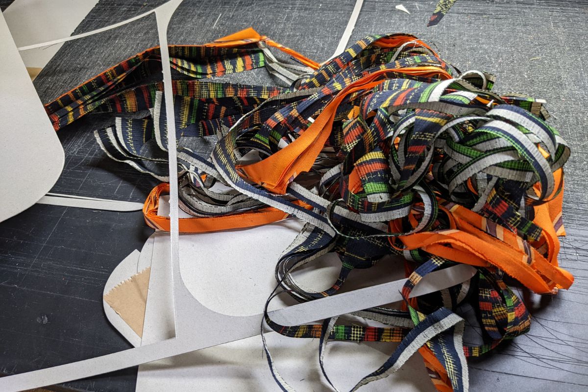 室町呉袋は、生地に余りを出さないよう裁断の仕方も工夫しています。例えば、トートバックは反物幅をそのまま生かし、ミニトートバッグやミニショルダーバッグは、反物幅から2つ分型取りできるよう工夫して、できる限りゴミを出さないモノつくりを追求しています。同時に松本商店では、古くから日本人の生活の中で使われてきた尺貫法による「尺」を基準にしたサイズ展開に拘り、今までもこれからも、日本人の生活になじむアイテムの開発を心がけています。