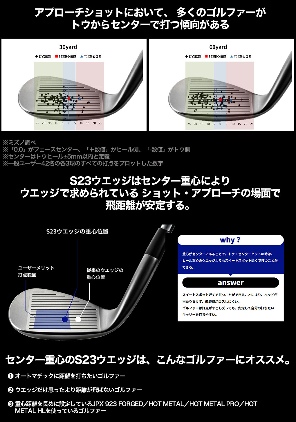 センター重心によりウエッジで求められているショット・アプローチの場面で飛距離が安定します。