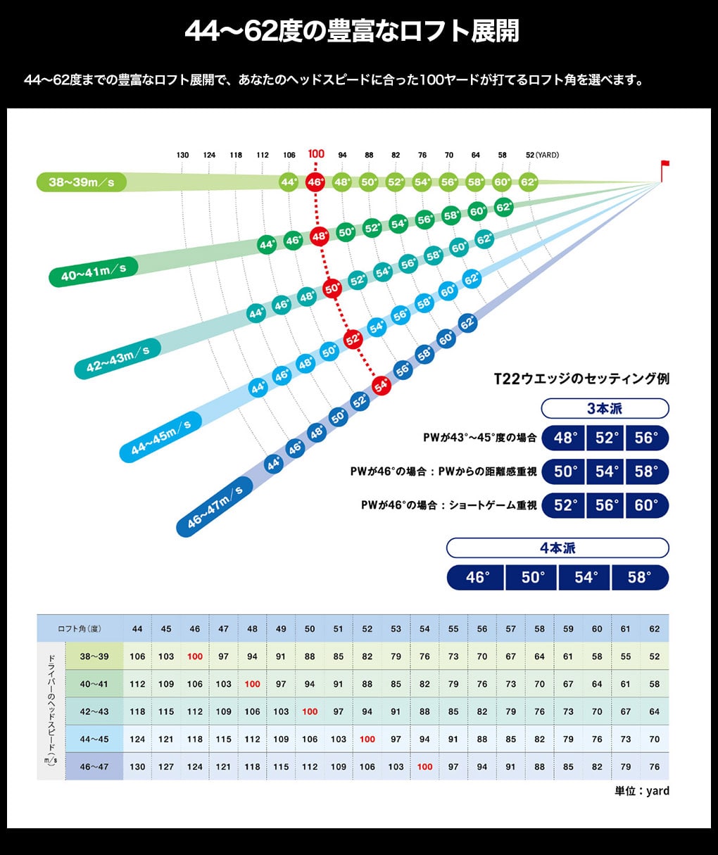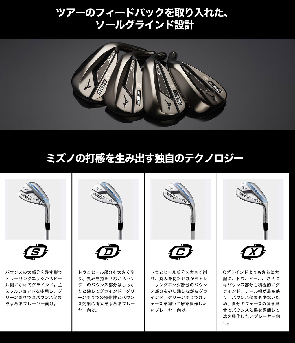 ◎S23ウエッジのバウンス角は実際に機能する数値を記載しています。ロフト角54度以上のバウンス角は従来の記載方法と異なります。