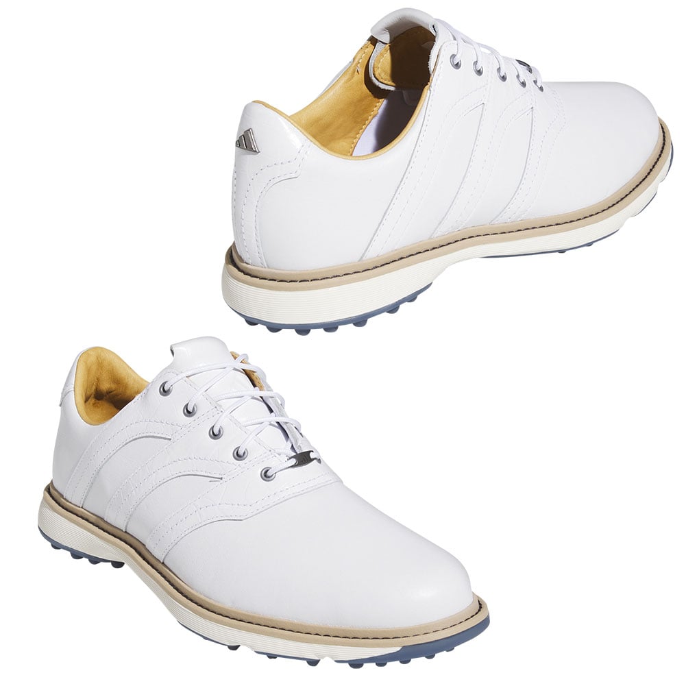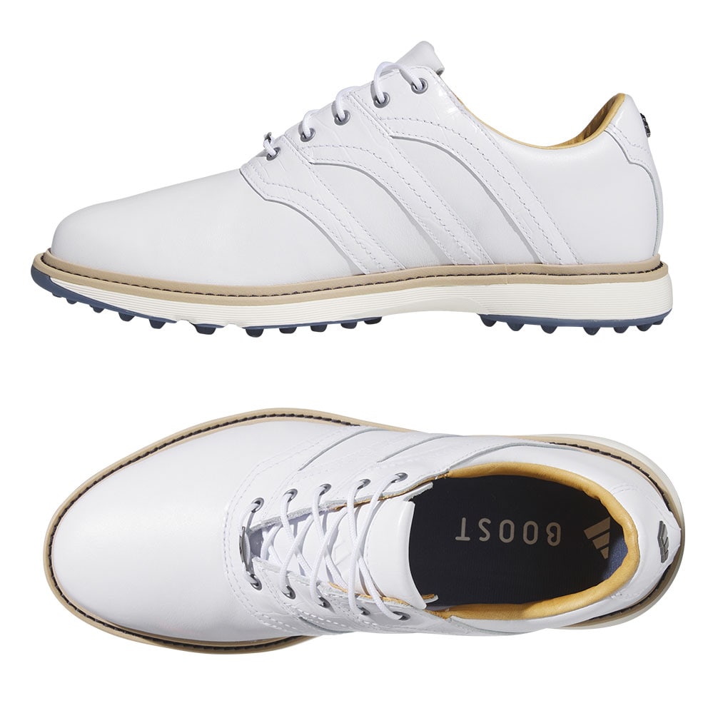 加えてヒールエリア内部にはBOOSTコアを内蔵することで、歩行時の踵にかかる圧をエネルギーに変換し、ソフトで快適な歩行を実現する。アウトソールは、90年代当時では画期的と言われた、アディダス独自のトルションテクノロジーを初搭載した“トルションゴルフ”というシューズのアウトソールデザインをベースに現代のツアーレベルのグリップ力をもたらすTPUスパイクレスアウトソールに改良。そこに、当時と同様のトルションバーを継承することでトルクコントロールが旧テクノロジーでもたらされている。ソール前足部には屈曲を促すフレックスグルーヴを採用することで、全体的に硬そうなレザーアッパー形状に反して非常に快適な歩行を可能にする。ゴルファーの多様性が高まり、さまざまなファッショントレンドに応えながらも現在のパフォーマンスをもたらすユニークな一足。