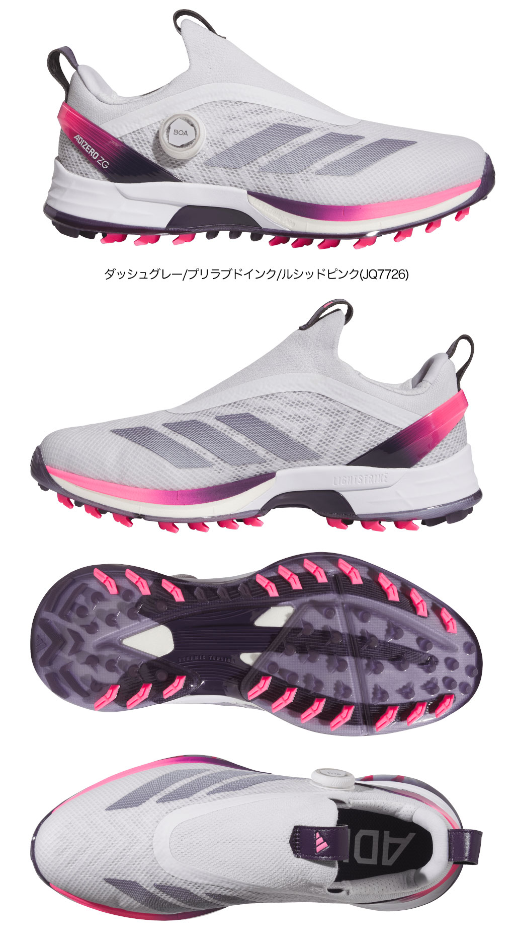 カラー:ホワイト/オーロラアイビー/ライムバースト(JI4162)、ダッシュグレー/プリラブドインク/ルシッドピンク(JQ7726)