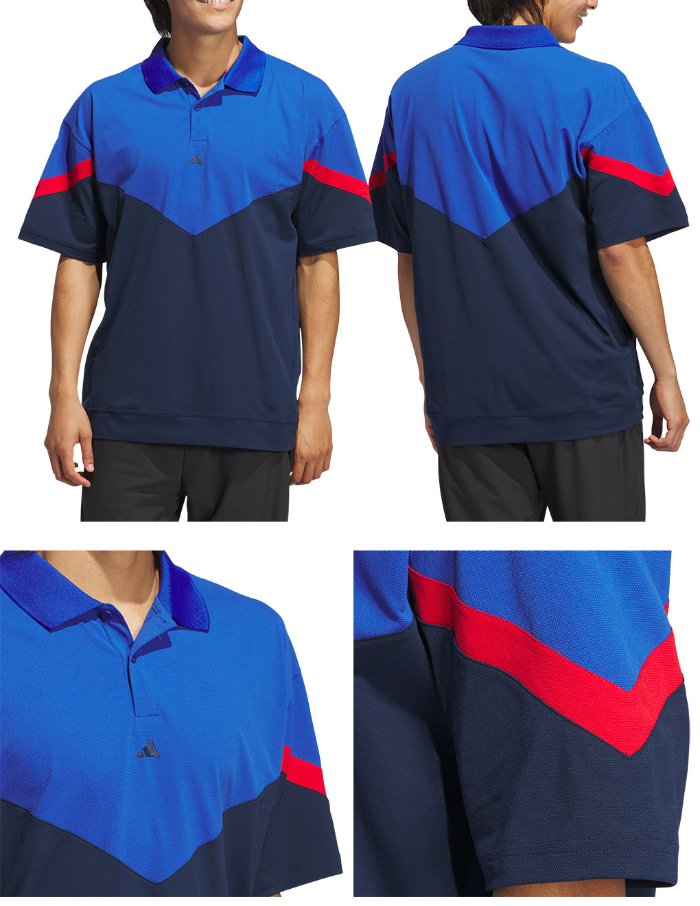 アディダス ツイストニット オーバーサイズ カラーブロック 半袖ポロ JTX78 メンズ ゴルウェア 2024秋冬モデル adidas 日本正規品