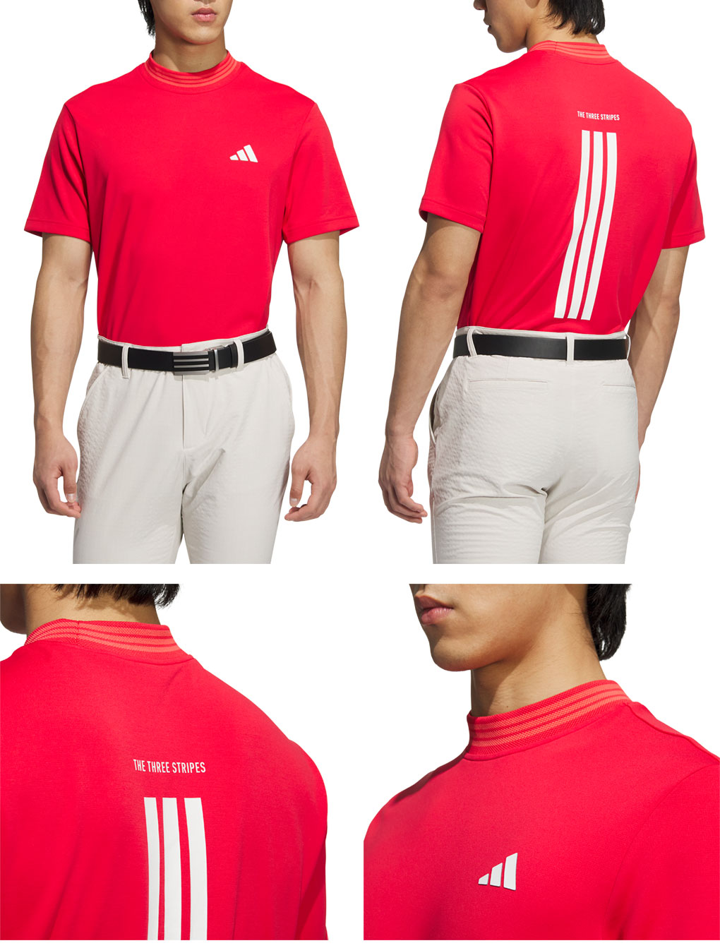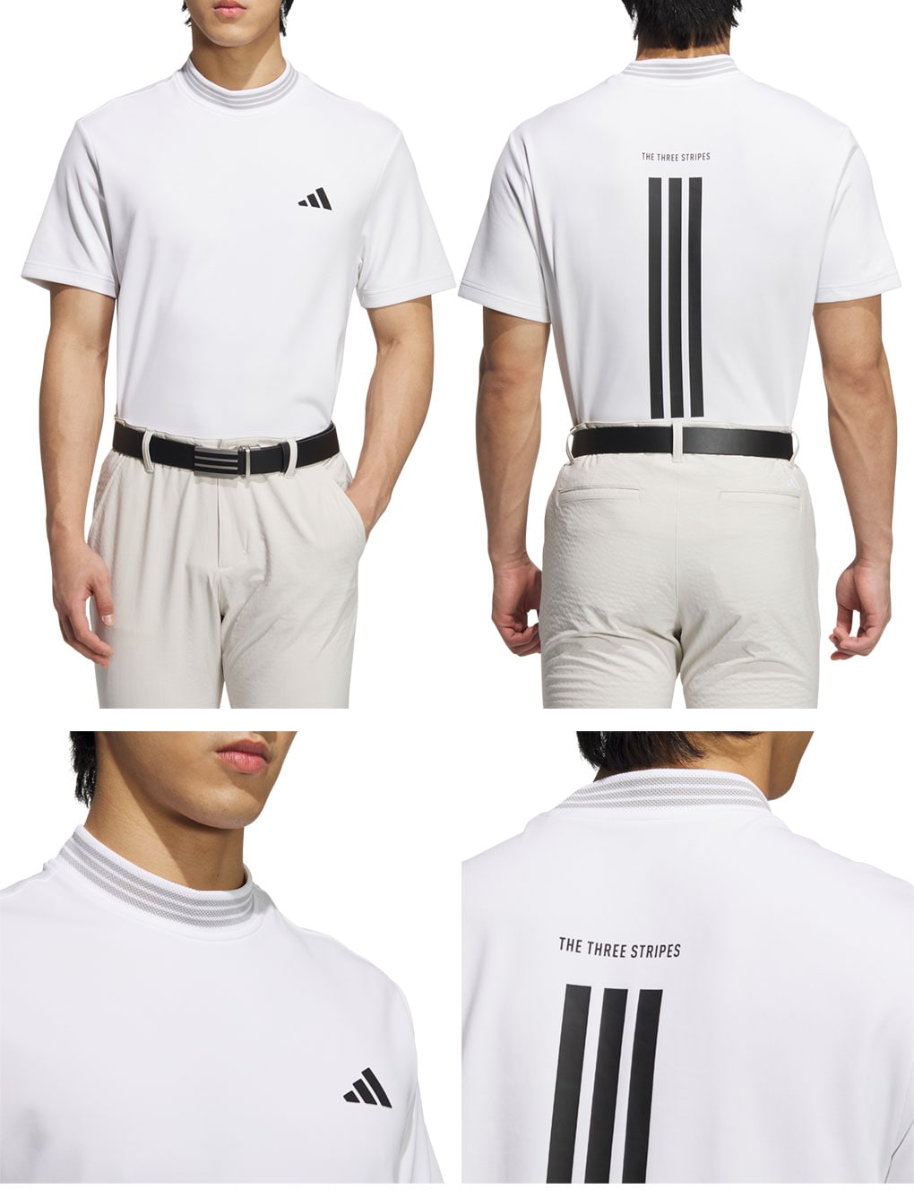 背中にスリーストライプスが大きくデザインされたモックネックシャツ。