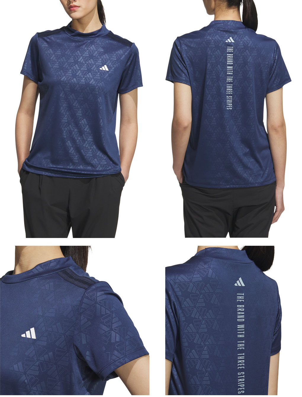 アディダス BOSロゴ柄 デボス モックネック半袖シャツ KTI74 レディース ゴルフウェア ゴルフ 2025春夏モデル adidas 日本正規品