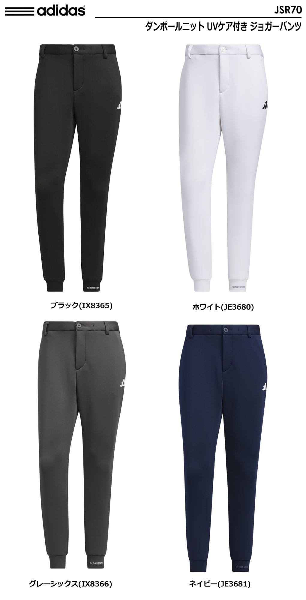 カラー:ホワイト(JE3680)、ブラック(IX8365)、グレーシックス(IX8366)、ネイビー(JE3681)