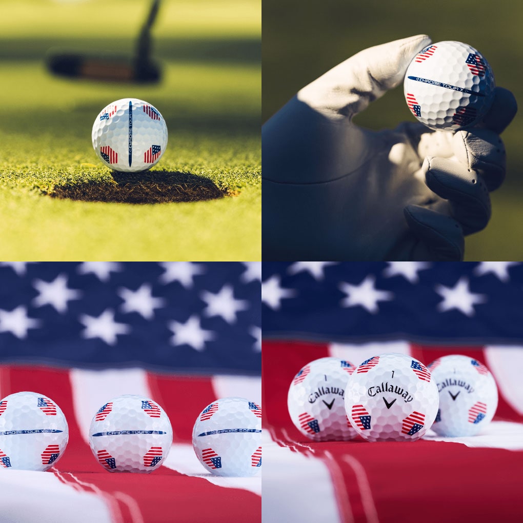 昨年に発売し大好評だったUSA国旗のロゴが入ったTRUTRACKボールが、新しくなったCHROMEシリーズにも採用され、公式オンラインストアおよびキャロウェイ/トラヴィスマシュー青山店、キャロウェイ心斎橋店、キャロウェイ フィッティングスタジオ Victoria Golf新宿店9階のみで、数量限定で発売されることになりました。TRUTRACKテクノロジーを搭載したボールは昨年以降、形を変えて発売し続けられています。ボールの表面に6角形のスタンプを計8カ所に均等に配置。複数の辺が同一線上となるようにレイアウトされているため、直線をイメージしやすく、セットアップの際にアライメントの役割を果たすようになっています。また、カバーの白い部分との割合や、USA国旗の柄により、転がりをとても認識しやすくなっているところも特徴的です。そして今回このUSA国旗ロゴが搭載されるのは、CHROME TOURボール、CHROME TOUR Xボール、CHROME SOFTボールの3種類。カラーはホワイトのみです。