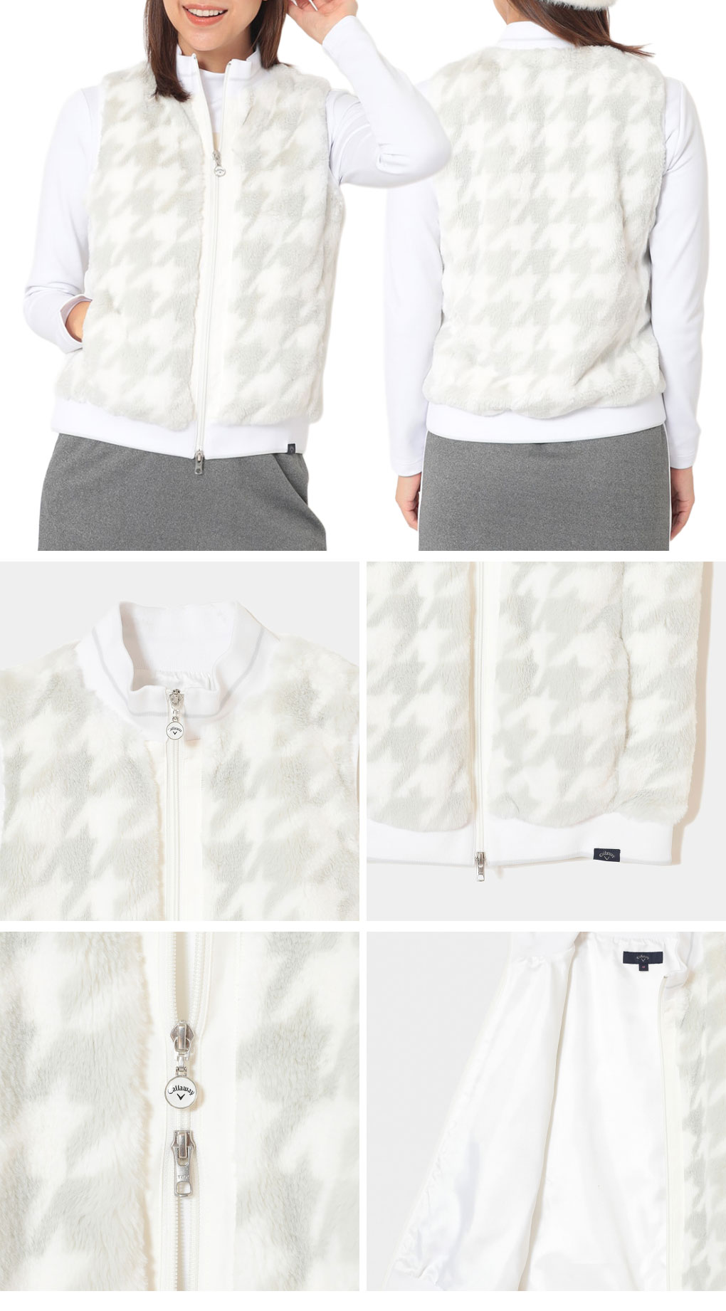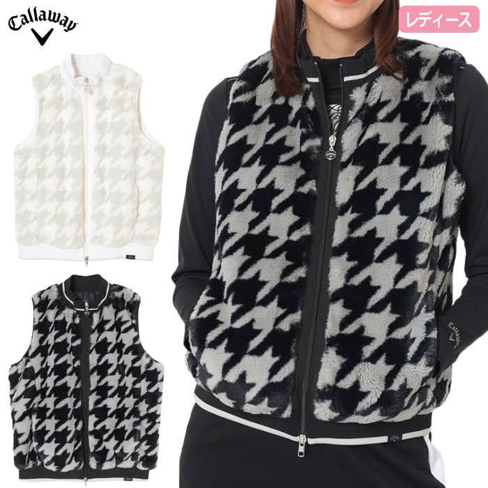 キャロウェイ 千鳥プリントファーベスト C25216203 レディース 袖なし Callaway ゴルフウェア 2025秋冬モデル 日本正規品