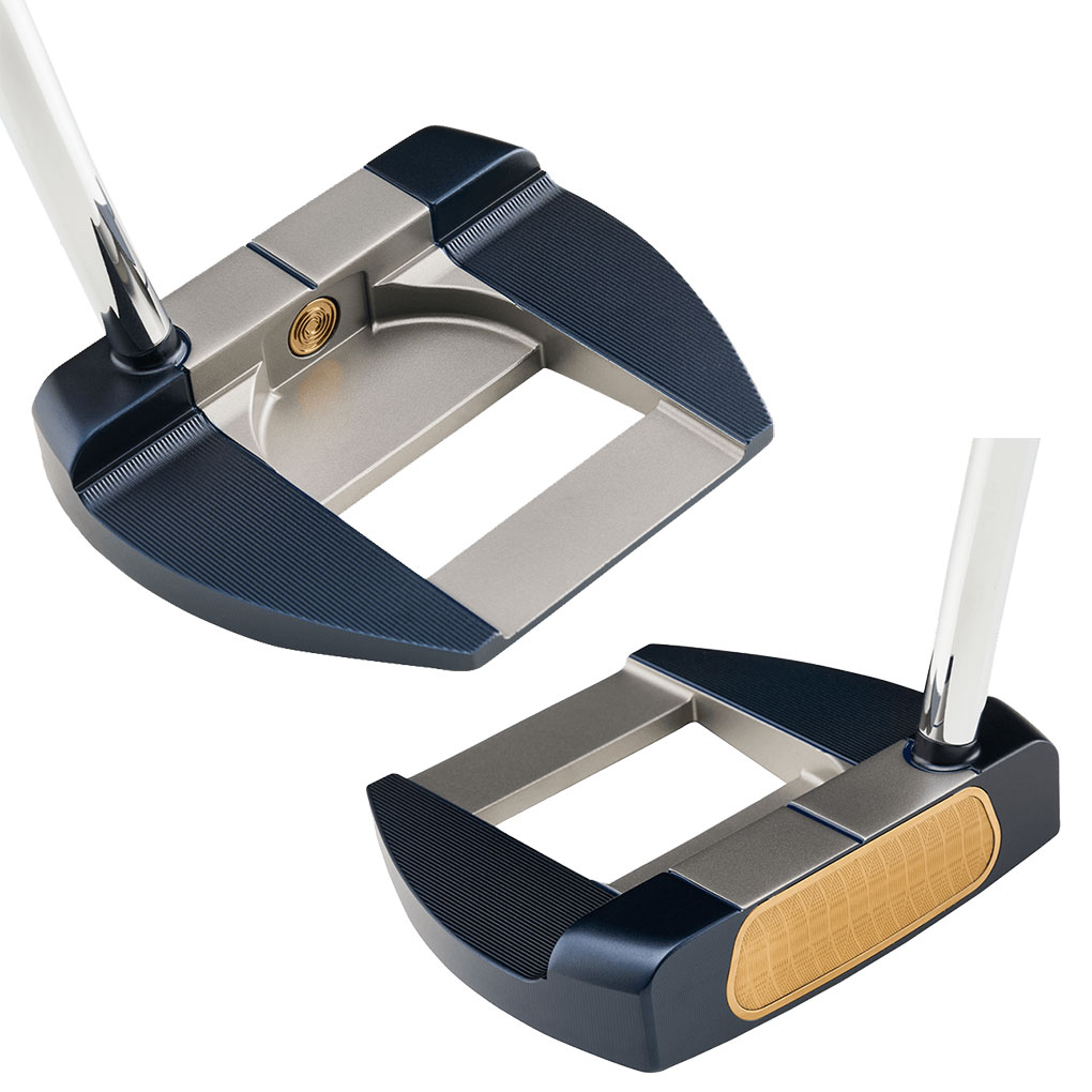 「Ai-ONE MILLEDパター」に、JAILBIRDタイプのヘッドを採用した2つ目のモデルが追加となります。名前は、「JAILBIRD MINI T VERSA90 DB」で、Ai-ONEパターなどにも登場した、飛球線方向に帯が入れられているVERSA90アライメント仕様のモデルです。トウ側とヒール側にはネイビーが使用され、その間の太いラインには、ゴールドが少し混ざっているようなシルバーが採用されています。メインのテクノロジーは、AIが設計し、6-4チタンで製作されている、ブロンズゴールドカラーのAi-ONEチタン・インサート。ミスヒットしてもボールスピードが落ちにくく、打感は樹脂が使用されているAi-ONE・インサートよりソリッドなものとなっています。ソールのトウとヒールには、約10gずつの2つのウェイトを搭載。さらに、タングステンウェイトも内蔵しているため、ヘッドの慣性モーメントはとても高く、そこに低トルクの特性などを持つSTROKE LAB 90シャフトが加わることにより、安定感のあるパッティングを一貫してプレーヤーにもたらすようになっています。