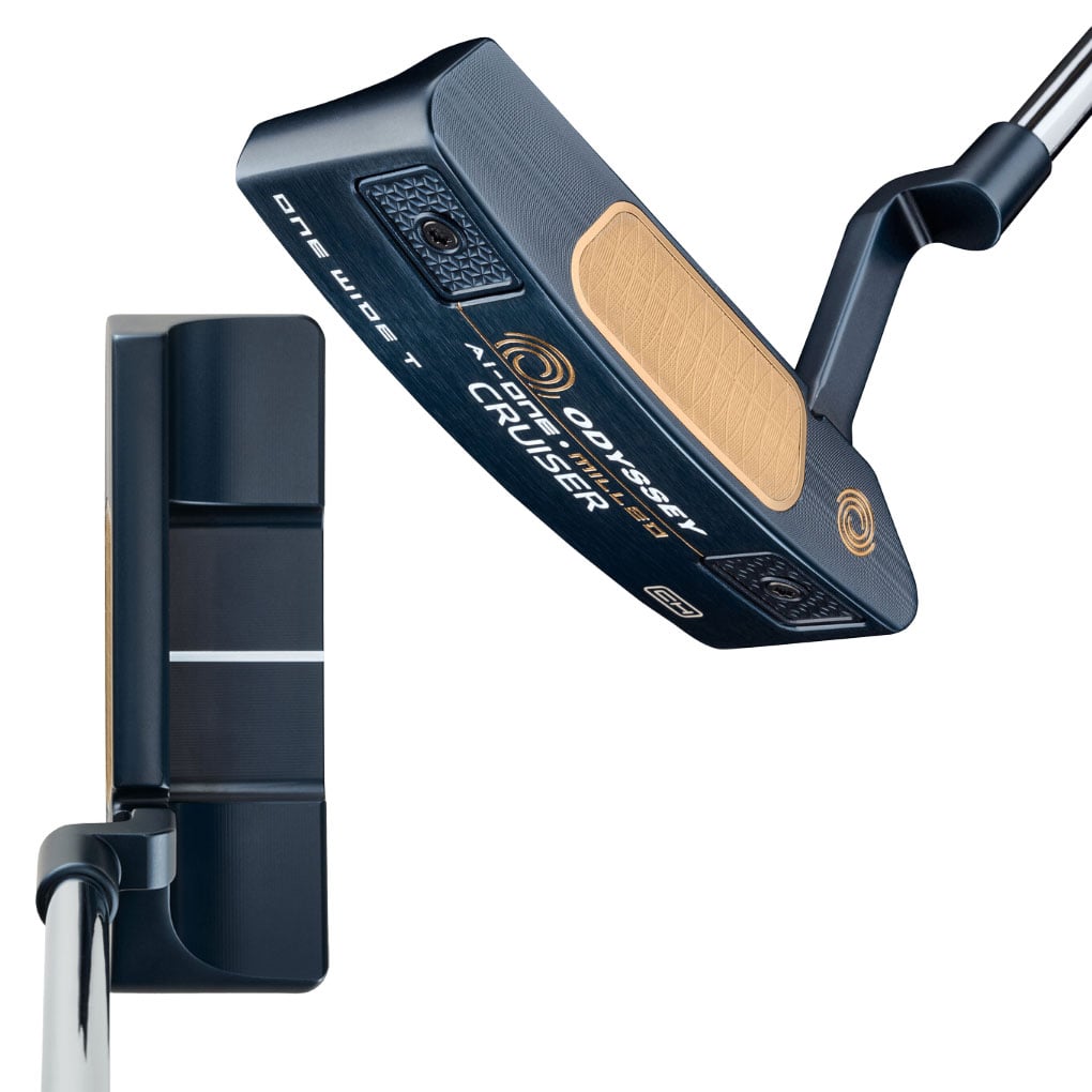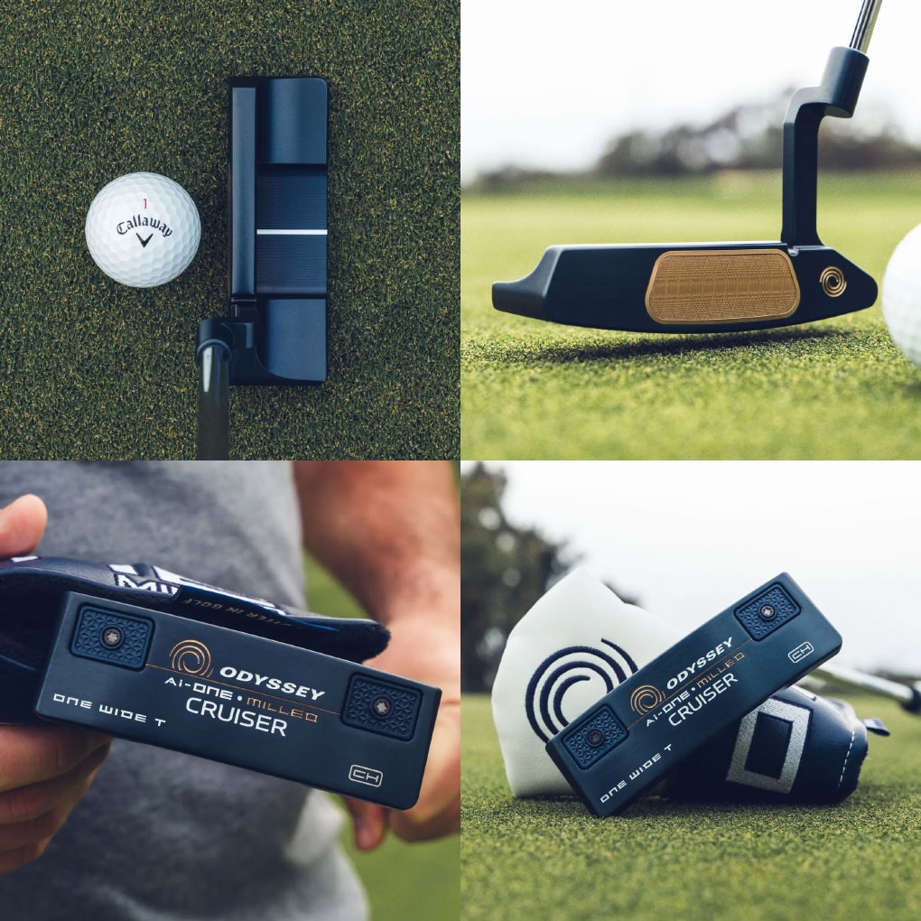 「Ai-ONE MILLED CRUISERパター」は、ストロークの安定感をアップさせるべく、Ai-ONE MILLEDパターのパター長さを38インチに延長し、長さが17インチで約83gのグリップを装着したモデルです。ヘッドタイプは計3種類で、幅の広いブレード形状で、バックフランジのトウとヒールが滑らかな曲線を描いている「ONE WIDE T CH」、ツアーでも人気の高い形状の「JAILBIRD T DB」、JAILBIRDのアライメントを飛球線方向に傾けたタイプの「JAILBIRD VERSA90 T DB」というラインアップとなっています。