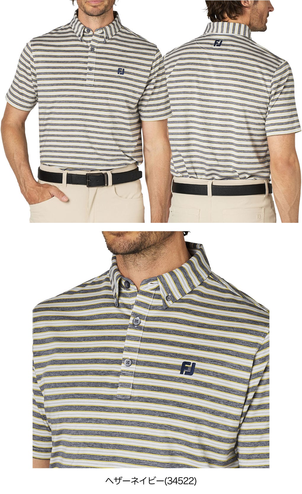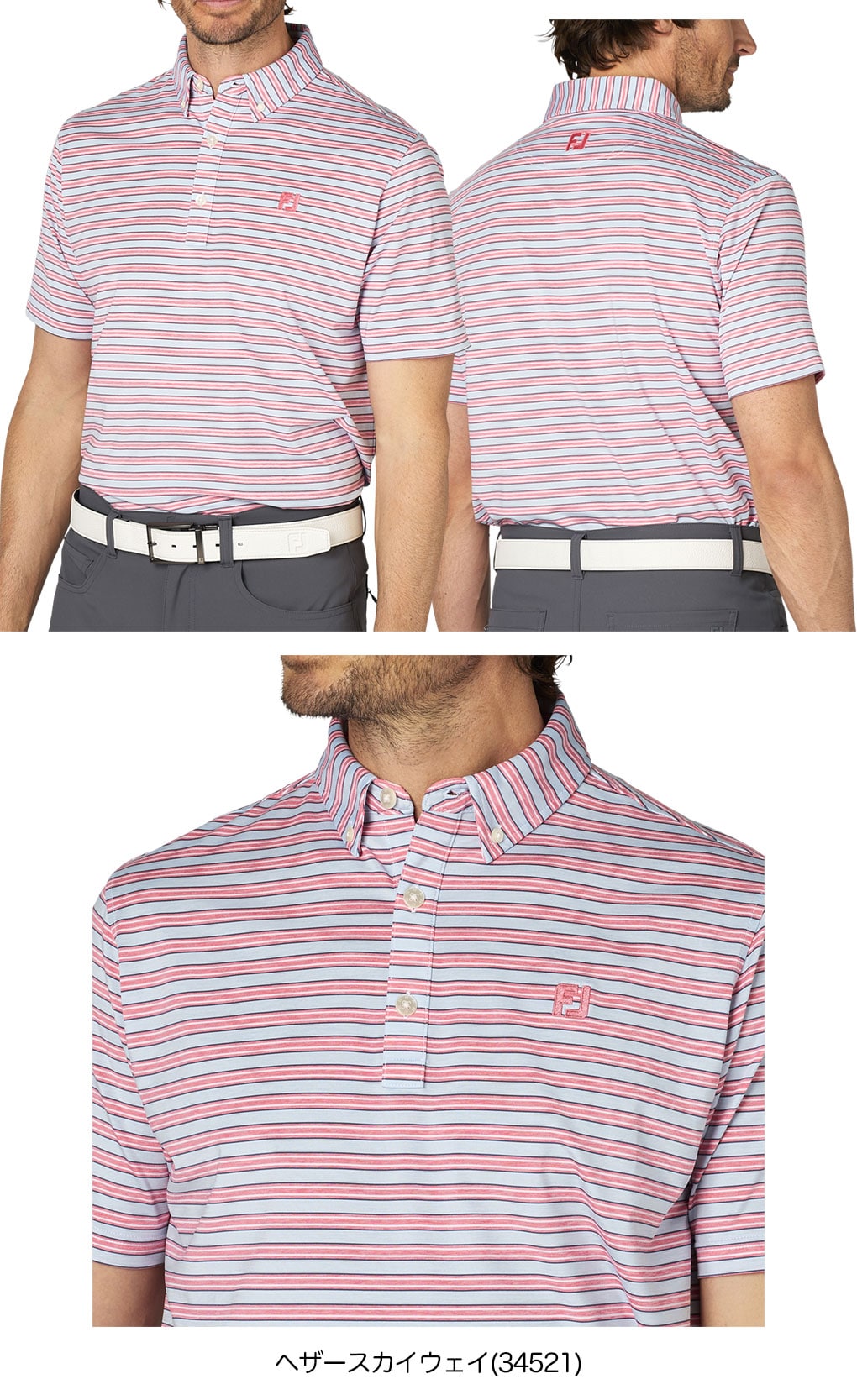 フットジョイ ヘザーストライプ半袖ボタンダウンシャツ FJ-F25-S11 メンズ ゴルフウェア FOOTJOY 2025春夏モデル 日本正規品