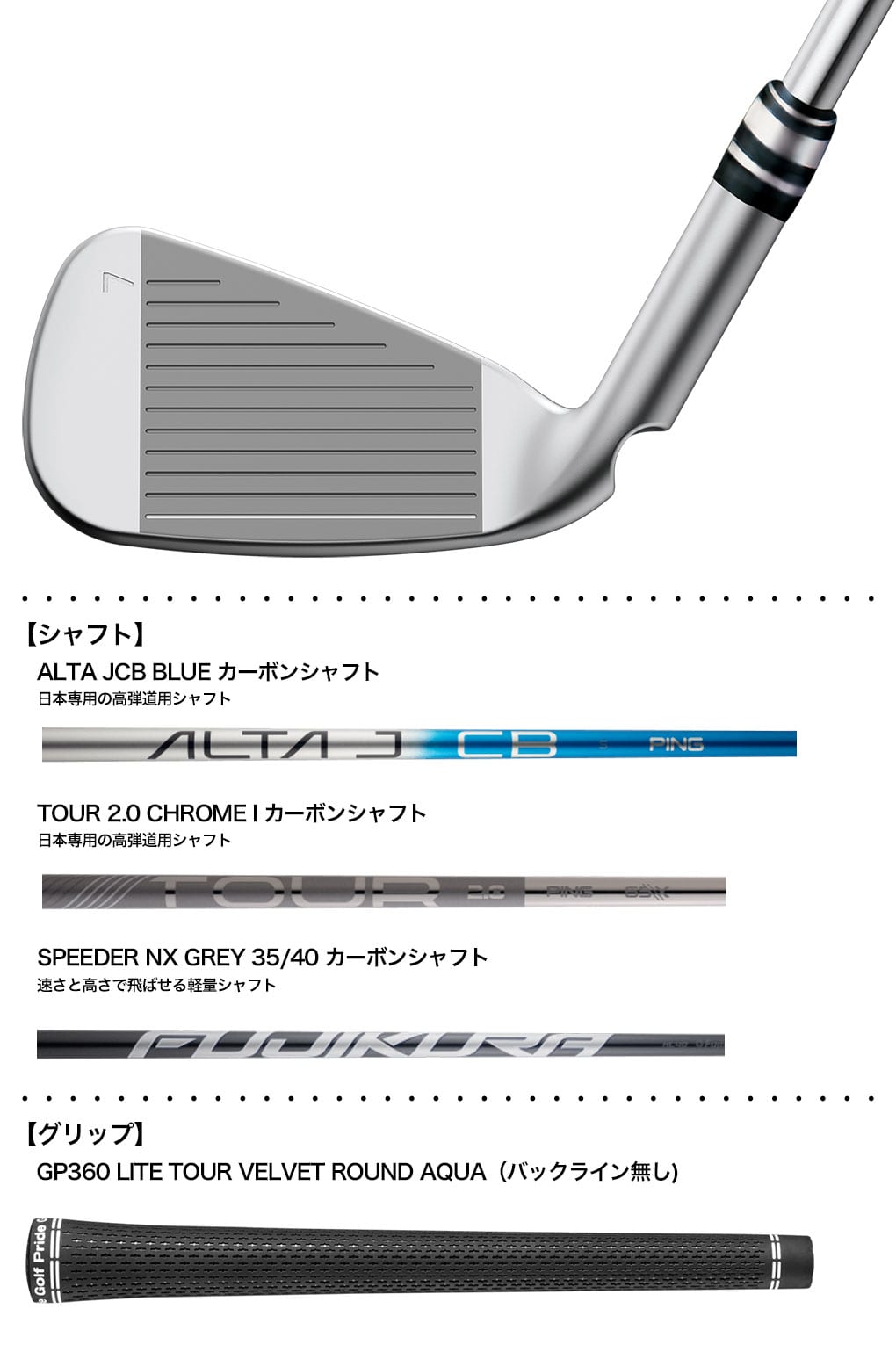 | シャフト名 | ALTA J CB BLUE | TOUR 2.0 CHROME I | SPEEDER NX GREY 35 | SPEEDER NX GREY 40 |