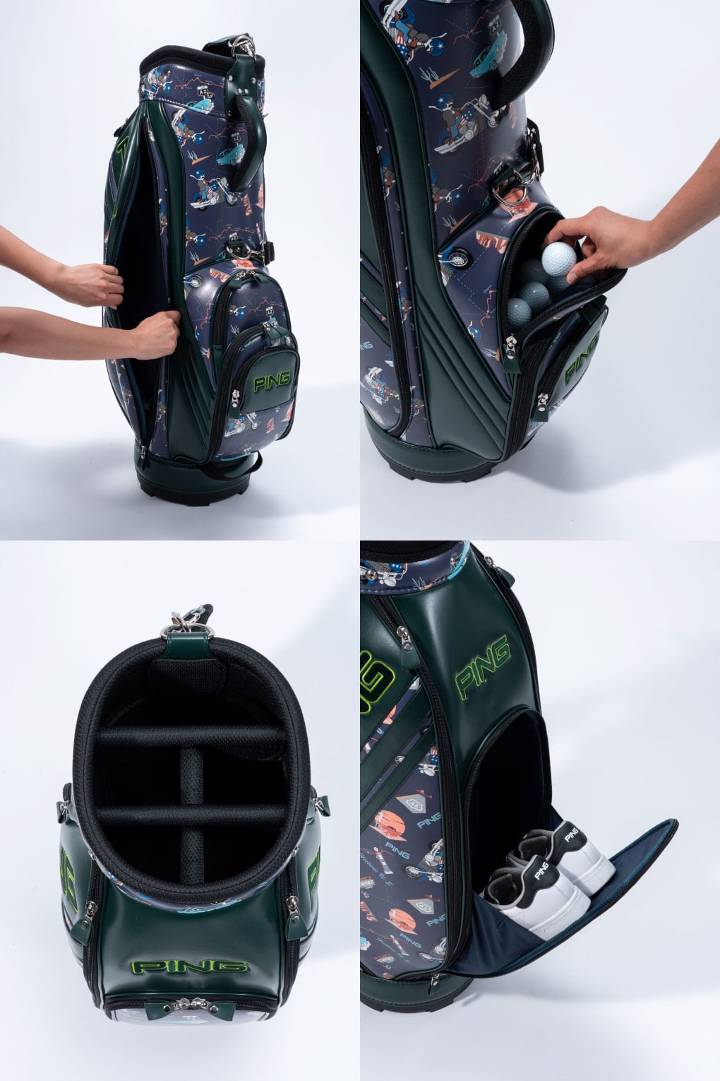 ・MR.PINGがバイクに乗ったモチーフが特徴的なプリント柄キャディバッグ