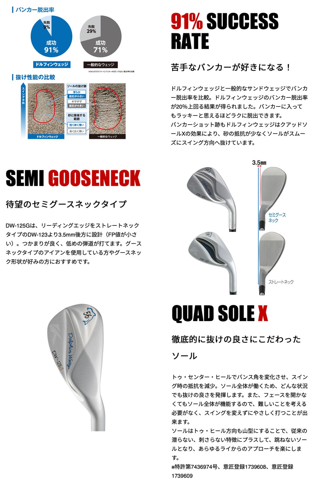 DW-125Gは、リーディングエッジをストレートネックタイプのDW-123より3.5mm後方に設計(FP値が小さい)。つかまりが良く、低めの弾道が打てます。グースネックタイプのアイアンを使用している方やグースネック形状が好みの方におすすめです。