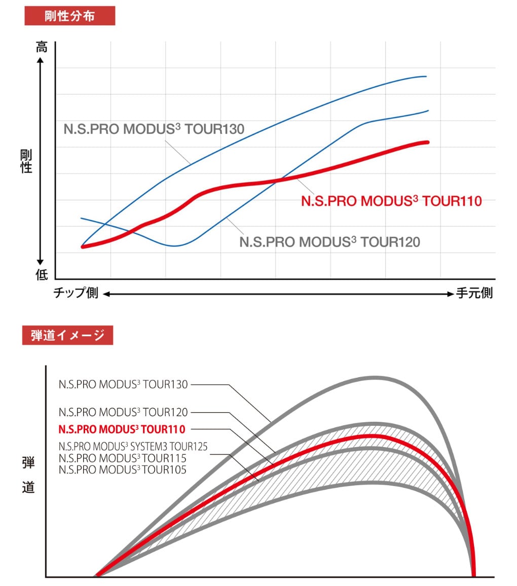 今回のプロジェクトは、ツアーで展開しているプロトタイプを整理し、求められる弾道や好まれる重量帯に対するヒアリングを繰り返し、より速く・より強く・より操作性に優れたシャフトのニーズが明らかにしました。その結果、N.S.PRO MODUS3ブランド第2章の新たな幕開けにふさわしいMODUS3シリーズ6モデル目となるN.S.PRO MODUS3 TOUR110が開発されました。(※2024年メーカー調べ)