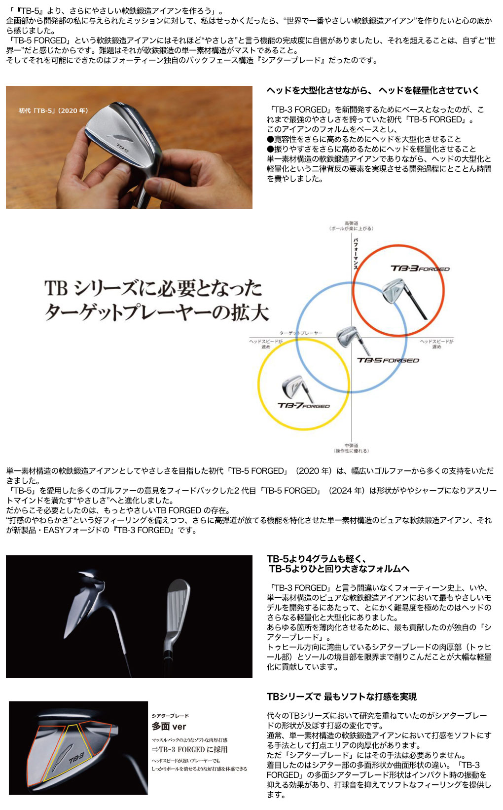 フォーティーン TB-3 FORGED アイアン 単品 (#6) メンズ 右用 FT-70i カーボンシャフト 軟鉄鍛造 2025年モデル 日本正規品 FOURTEEN ゴルフクラブ