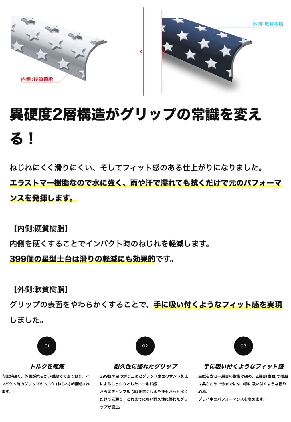 グリップの表面をやわらかくすることで、手に吸い付くようなフィット感を実現しました。
