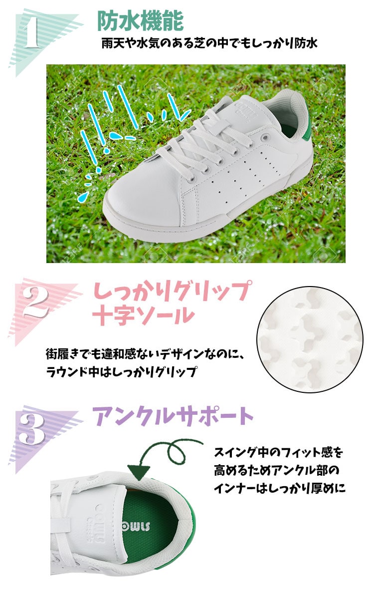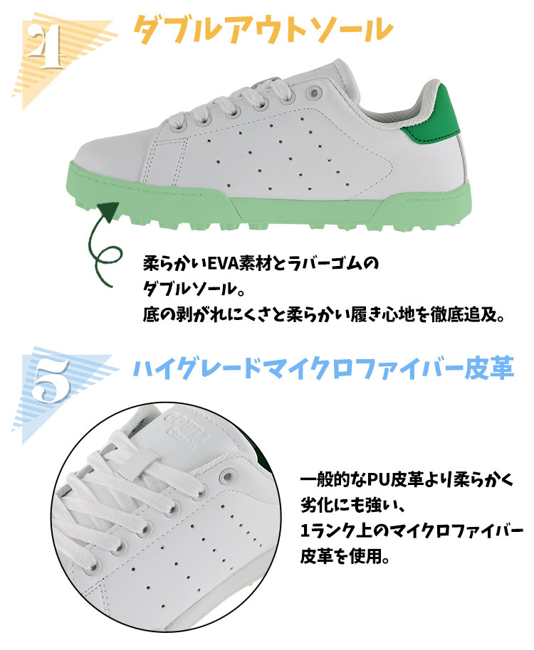 ゴルフっぽさを抑えたスニーカー風のデザイン。
