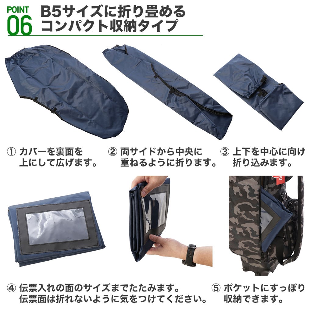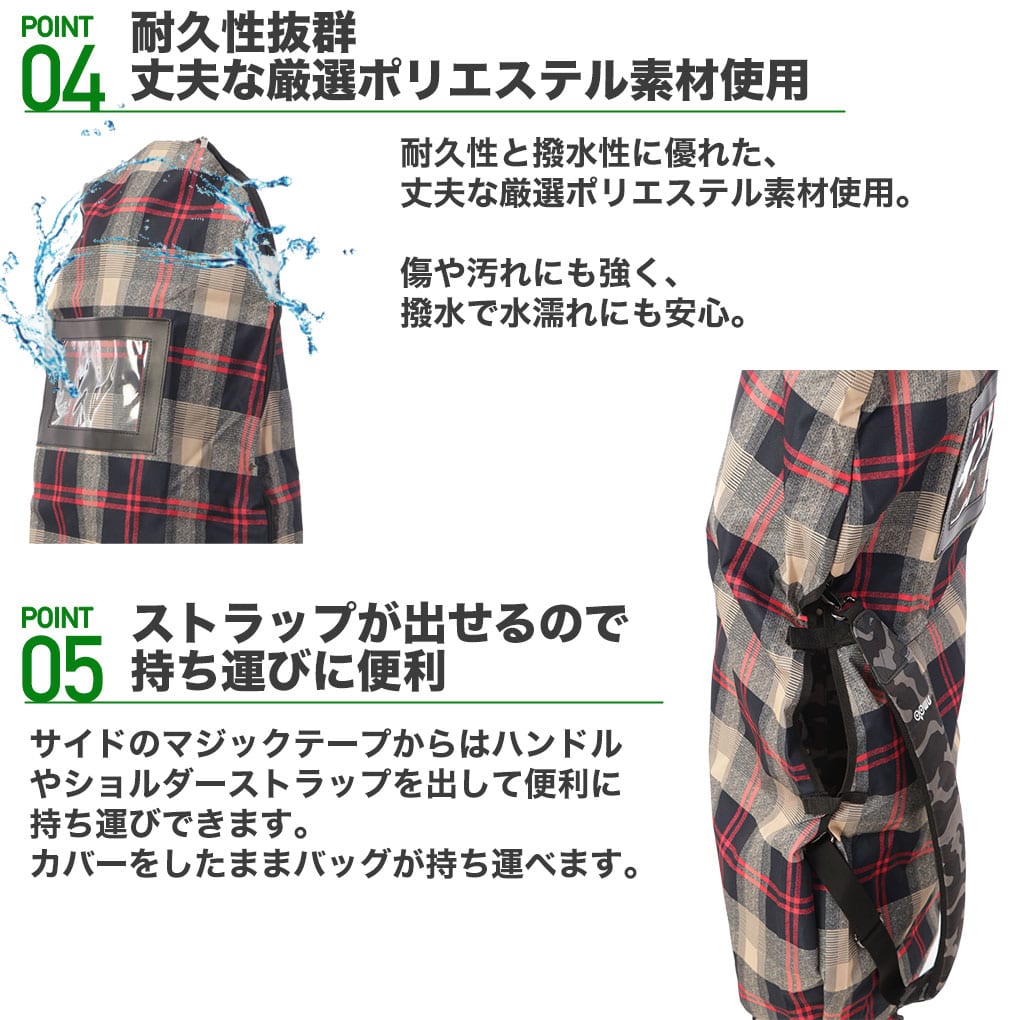 ・最下部のマジックテープによりカバーをしっかり固定。地面に擦らずに利用可能。