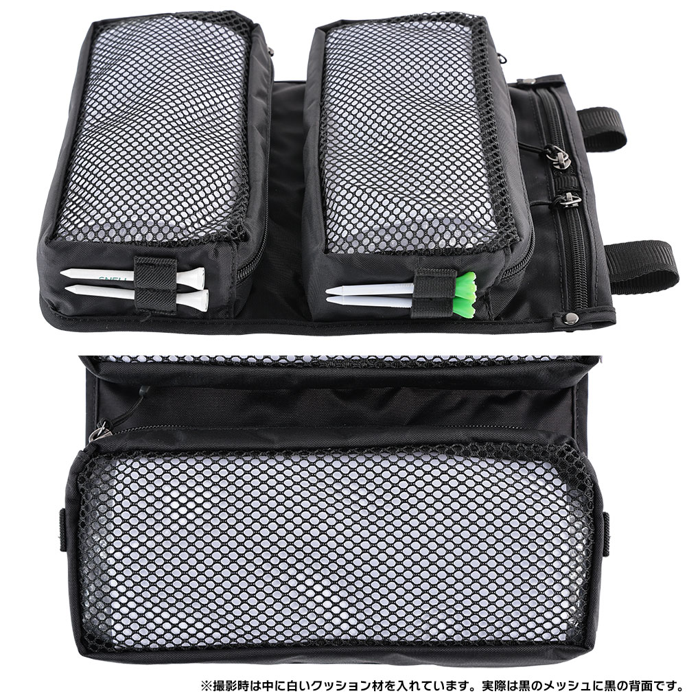 ポケット数:4 (メッシュ大口ポケット×2、貴重品小ポケット×2)+ティーフォルダー付き