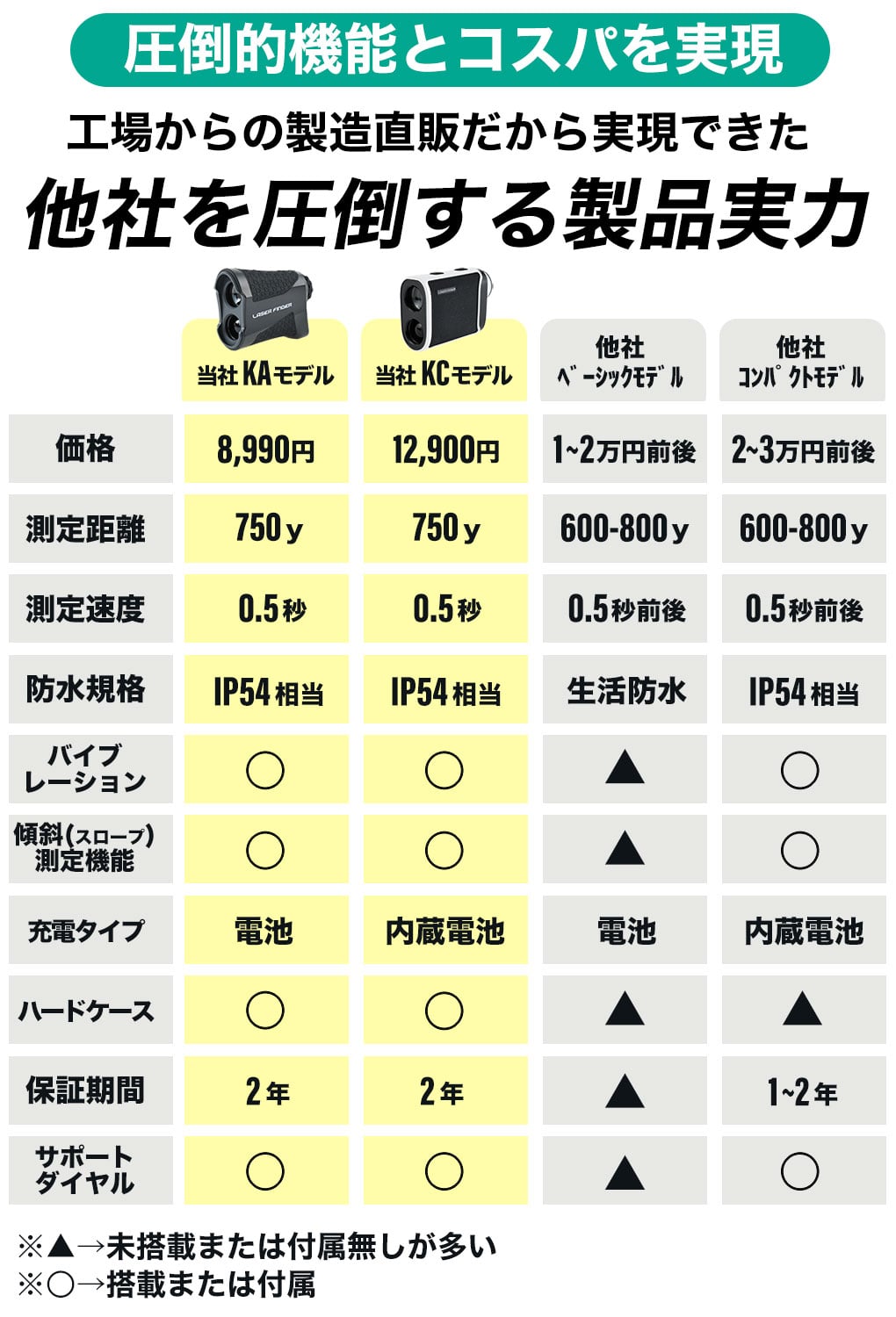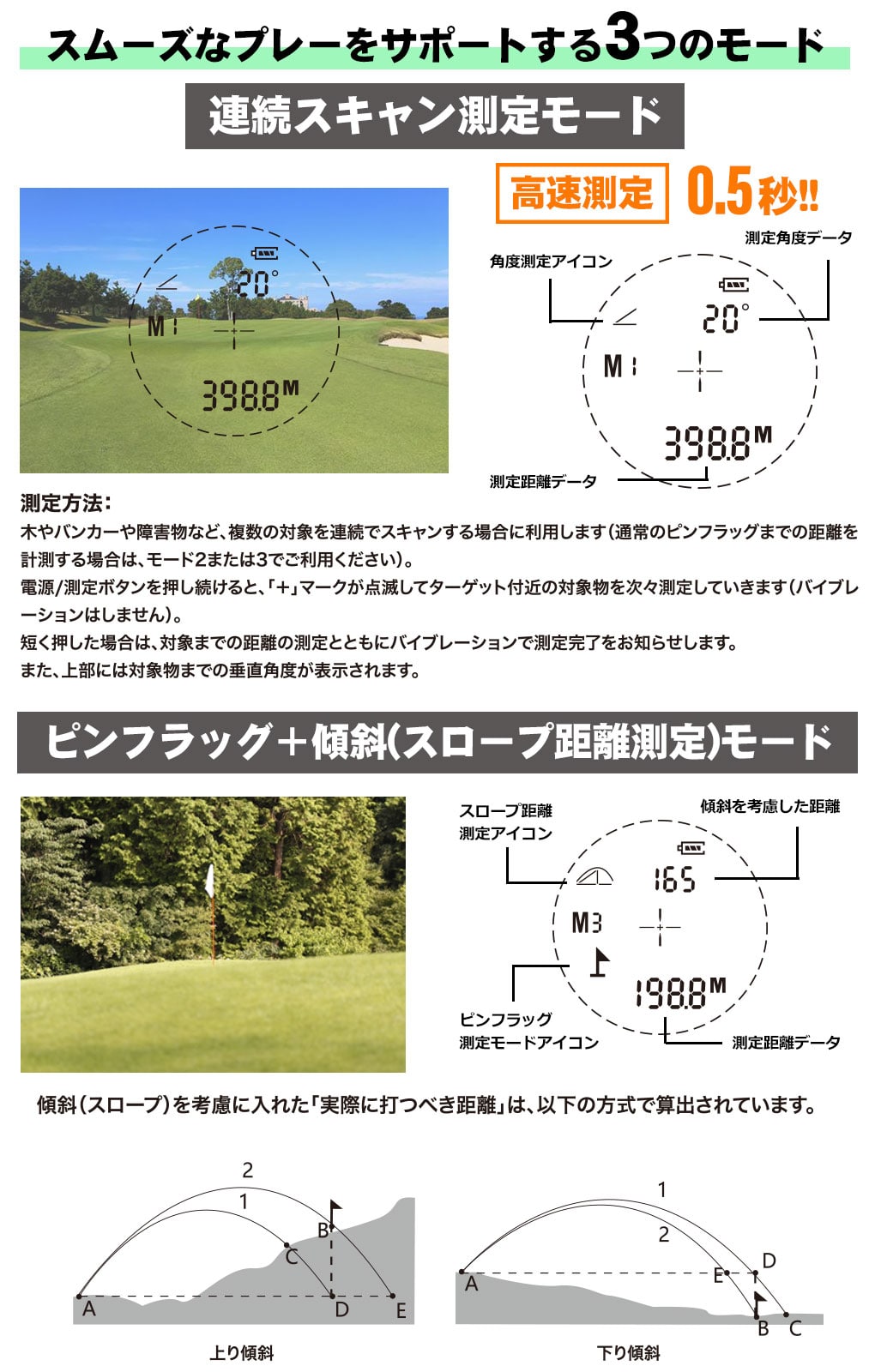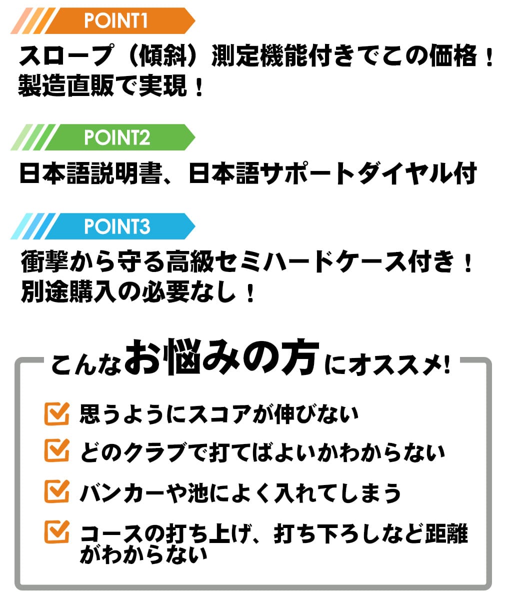 ・さらにこの価格でスロープ(傾斜距離測定)モード搭載と、必要十分な機能を全て搭載