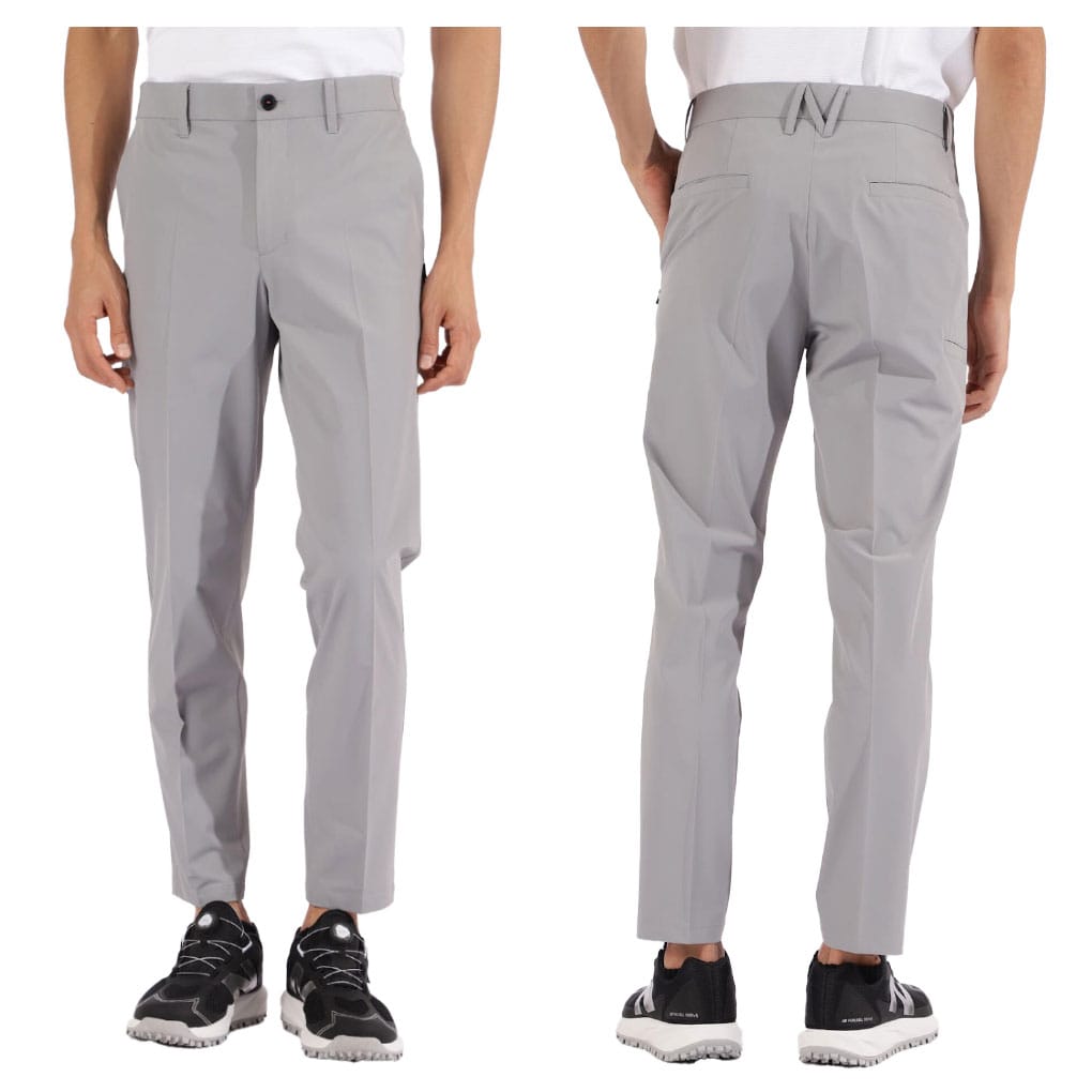 暑さ対策に特化し、「MEMORICH COOL&DRY」と「SK9」を搭載した機能ロングパンツ。伸縮性のある生地で、センタープレス入りの真っすぐなシルエットが綺麗な大人なレッグラインを演出します。原糸に酸化チタンやセラミックを多く練り込んだフルダル糸を使用することで、光の透過や反射を防ぐことで素材の透け感を軽減しUV遮熱効果もアップしました。さらに穿いた瞬間からひんやりする接触冷感や蒸れを軽減するサラッとした着用感を保つ吸汗速乾性を備えており、夏場のゴルフシーンを快適にサポートします。