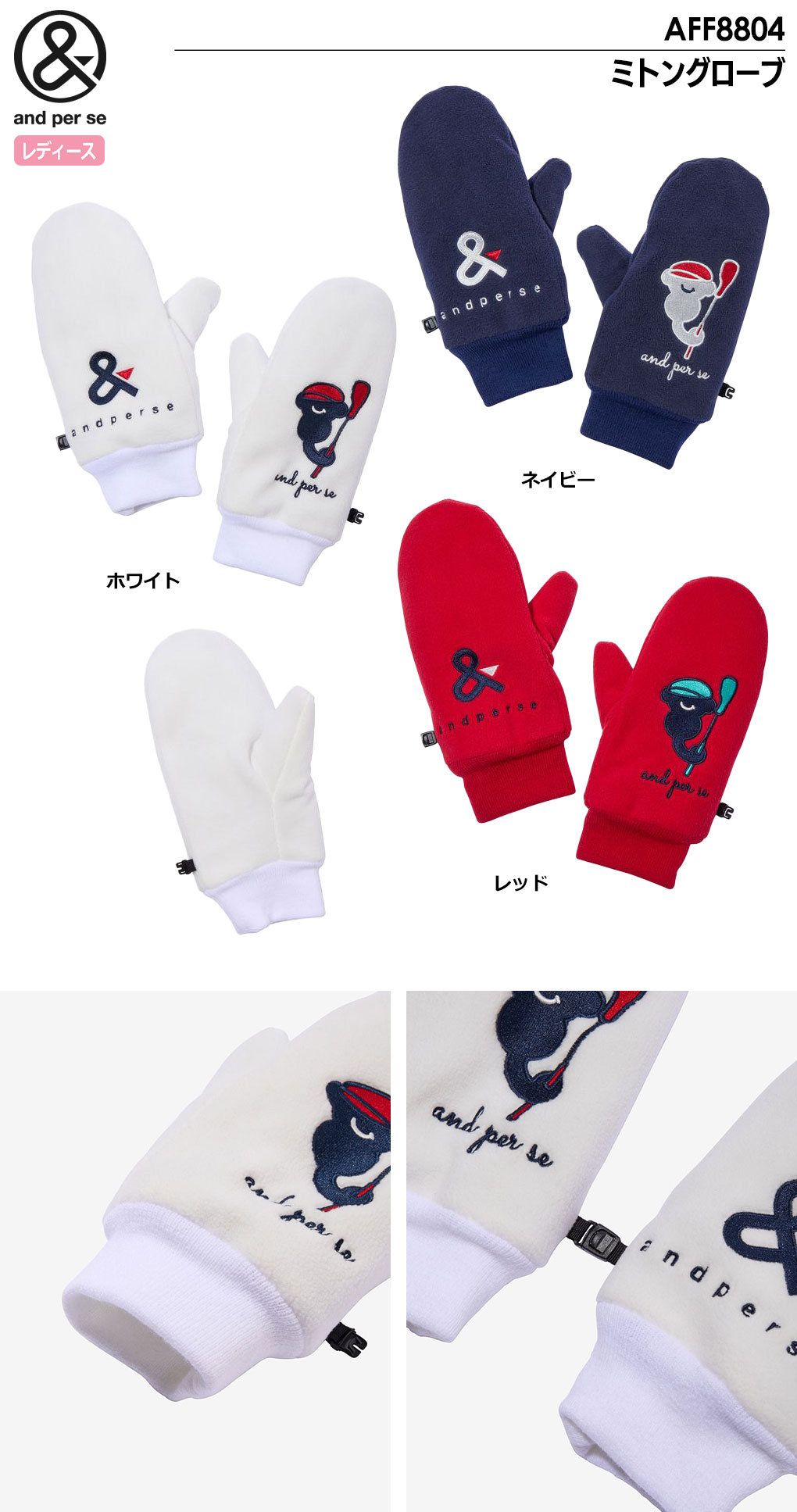 アンパスィ ミトングローブ AFF8804 レディース 手袋 and per se ゴルフウェア 2024秋冬モデル 日本正規品