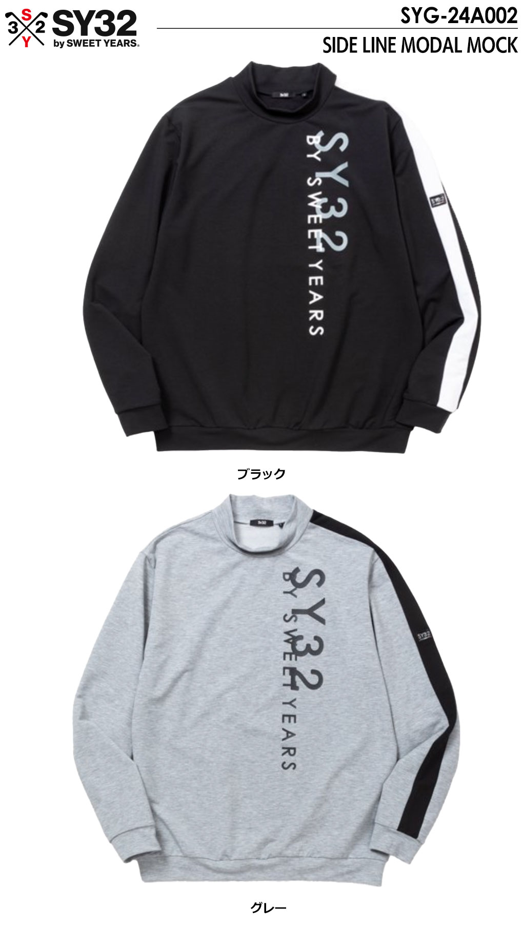 SY32 GOLF SYG-24A002 ゴルフウェア SIDE LINE MODAL MOCK シャツ 長袖 メンズ 日本正規品 2024秋冬モデル