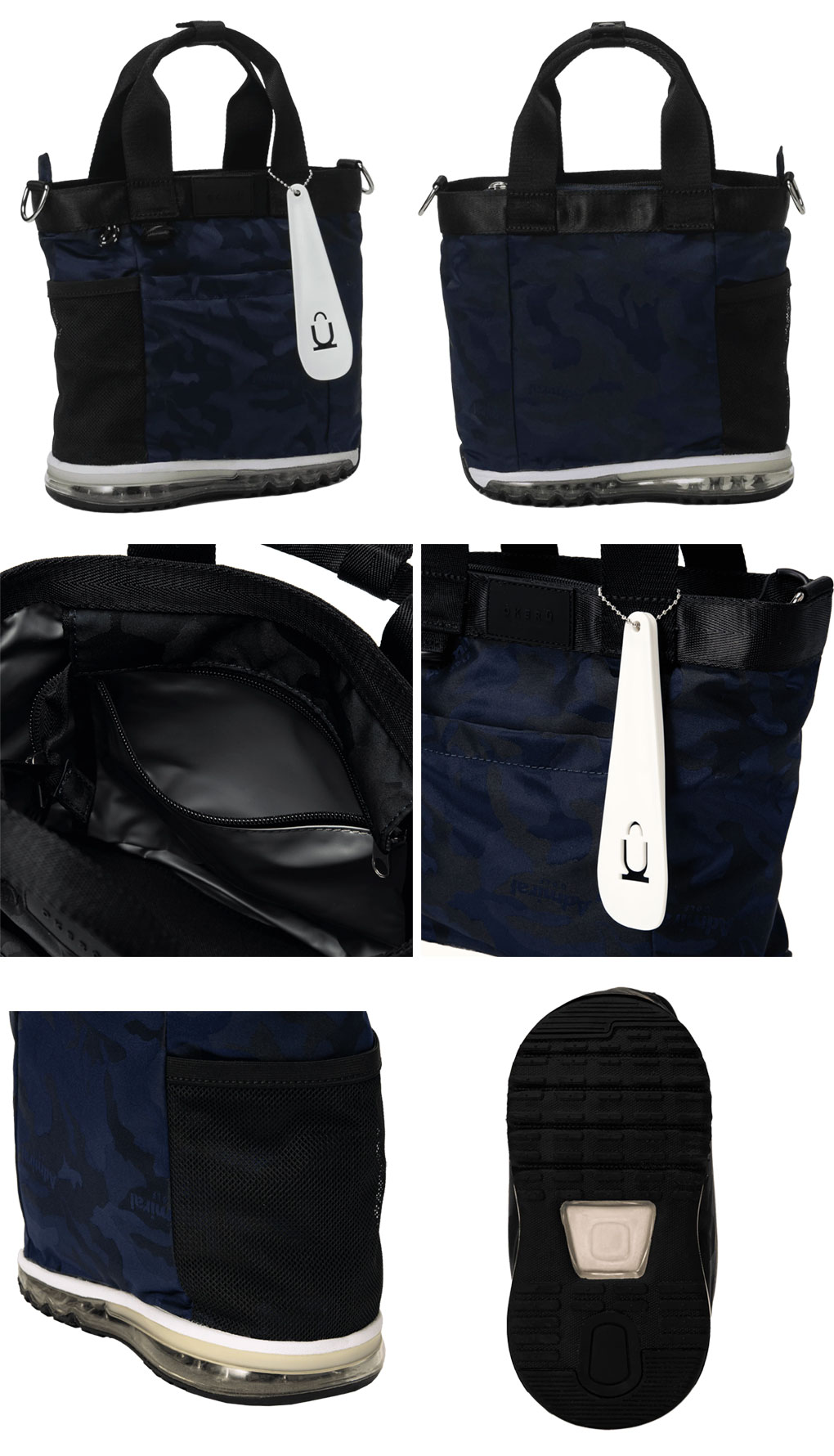 Admiralのオリジナルカモフラージュファブリックを使用したコラボレーションモデル。天マチにはファスナーが付いてゴルフやアウトドアでのカラス対策も安心。ライニングには汚れを拭き取りやすい素材を使用し、気軽にどこにでも置けるデザインは普段使いからペットのお散歩、ピクニック、アウトドアなどで大活躍。取り外し可能なショルダーストラップも付属し、コーディネートやお出掛け先によって使い方が変えられるところもうれしいポイント。