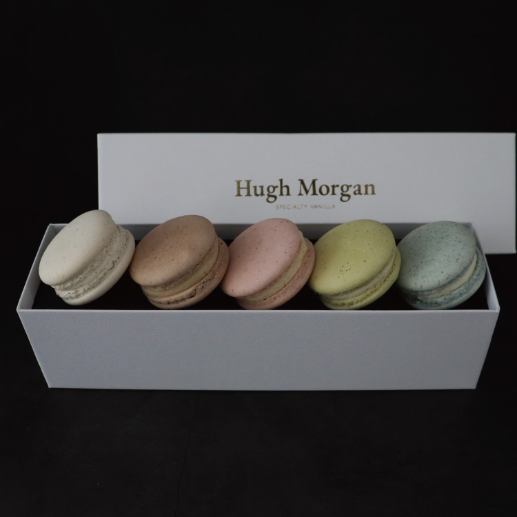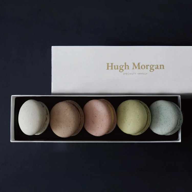 甘やかで奥深い香りが、五感をやさしく包み込みます。Hugh Morganの新作マカロンは、着色料を一切使用せず、バタフライピーやピスタチオなど自然由来の素材で色を表現。上品で控えめな色合いで、口に運ぶたびに心がほどけるような、優雅な余韻が広がります。*マダガスカル産プランフォリア種のバニラを使用。