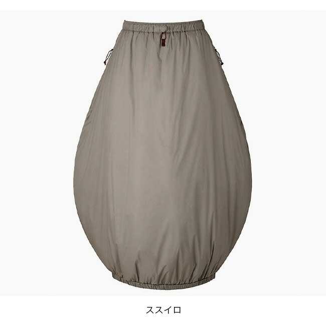 アグラスカートは、あぐらをかいても膝が突っ張らず、座ったままでも暖かさを保つ樽型シルエットが特長の防寒スカートです。深い腰回りとスルーポケットで快適な着用感を実現し、足元を覆えば保温効果を高められます。