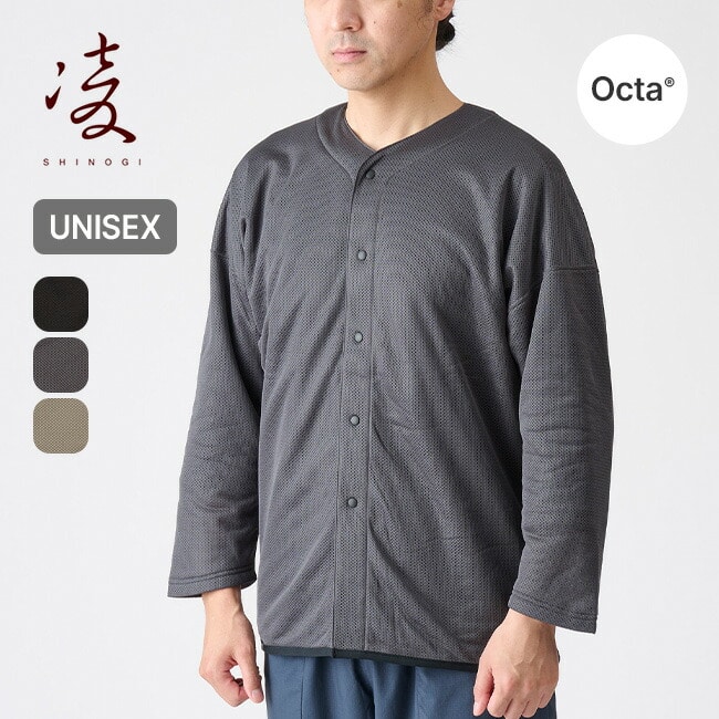 シノギング後の休憩時にぴったりな「ハヲリモノocta」。汗だくのベースレイヤーの上に羽織るだけで、octa素材が素早く汗を吸収・拡散し、身体を冷やさず乾かしてくれます。