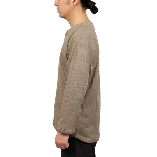 表面の見た目は単なるメッシュですが、裏面は細かなモフモフの繊維に覆われているので、軽量でありながら必要十分な暖かさを提供します。画期的なポリエステル素材の帝人Octaは、同じ直径のポリエステル繊維の重さに比べて約半分と軽く、繊維の中心の空洞部分と、表面に放射線状に配列された八本の突起が汗を素早く吸い上げて拡散させるだけではなく、その独特の形状によってできる空間に多くのデッドエアーを含むことで遮熱保温効果を実現します。
