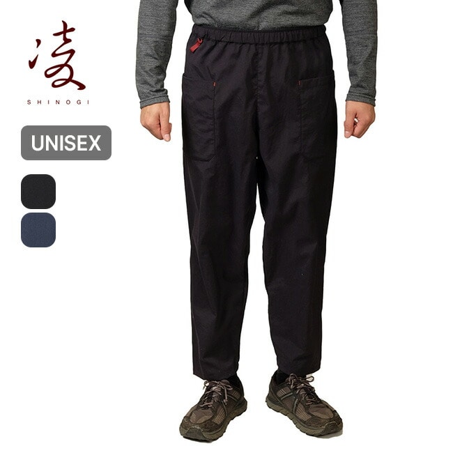 山仕事の作業着として使われていた野良着を再現しているので、ヒップから膝に掛けて少し太めになっていて動きにストレスを感じません。また、膝から裾に掛けて細くなっているので悪い場所での足元確認がしやすくなっています。他に、ナイロンベルトを排除してスッキリしたウェスト周り、バックパックのヒップベルトに干渉せず行動中に使いやすい位置にあるサイドポケットなど、凌ならではのアイデアを足して着心地を向上させています。