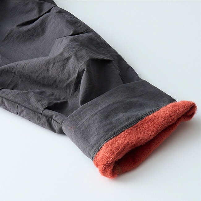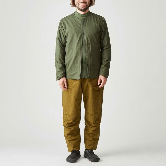ヴィンテージナイロンのパンツのデザインをそのままに、柔らかくて通気性のあるタッサーナイロンにoctaをライニングしたアクティブインサレーションパンツです。冷え込んだ冬の峠道をあたたかく、それでいてオーバーヒートせずに歩けるように、保温性、適度な防風性、通気性を備えています。