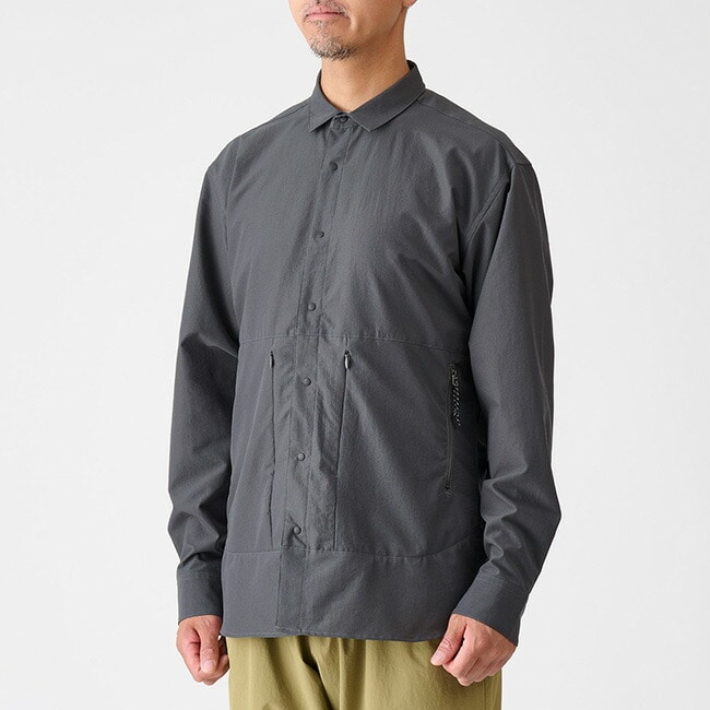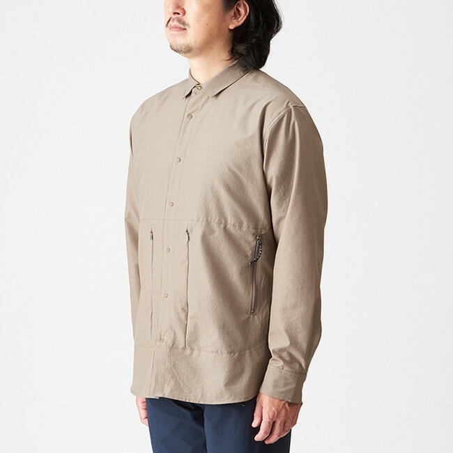 夏山縦走やハイキングで何か一枚着ていたいというときにおすすめのシャツです。非常に高い通気性によって涼しさを確保しながら気になる身体のラインをカモフラージュすることができます。