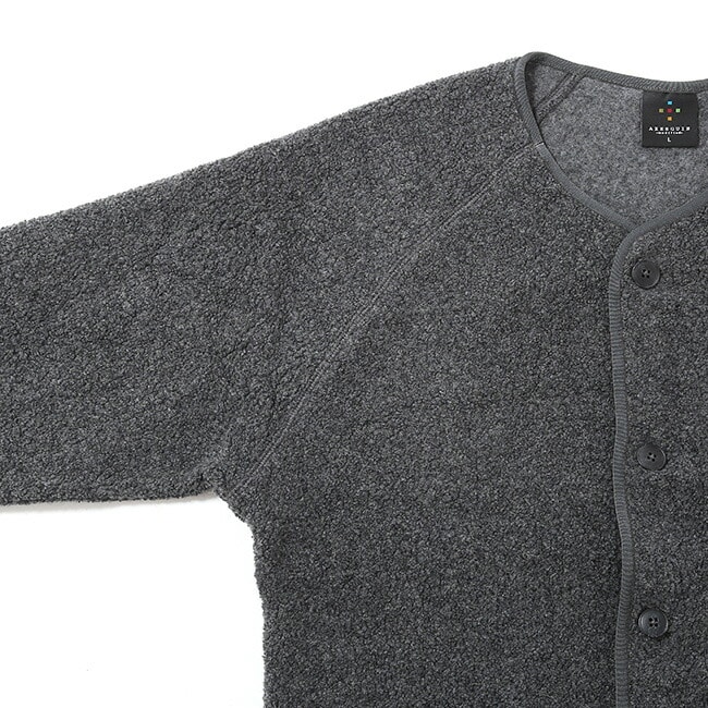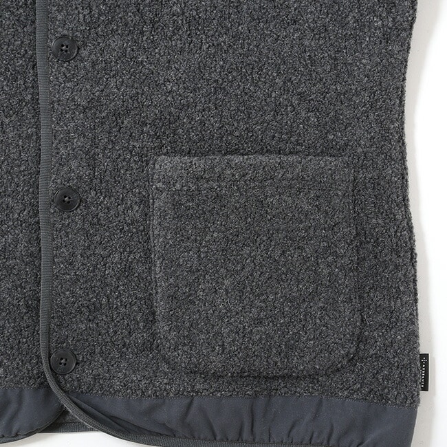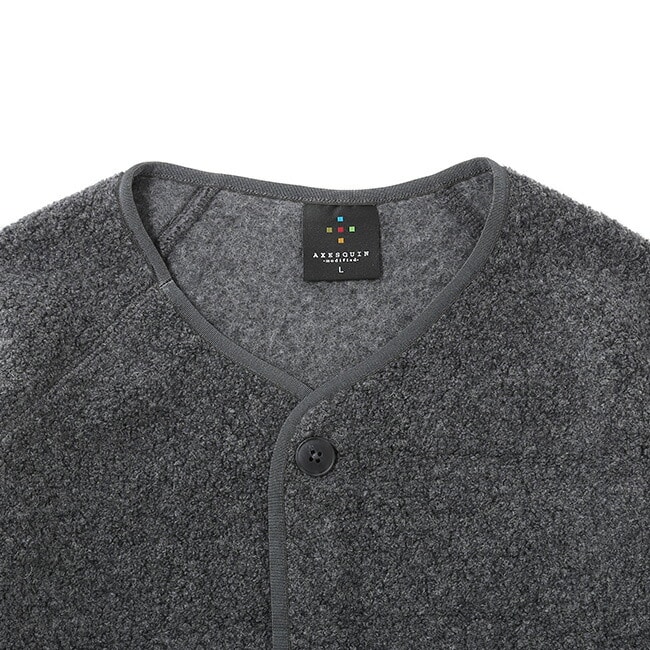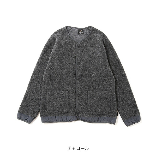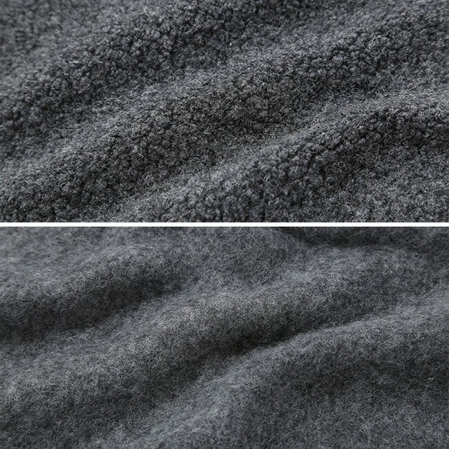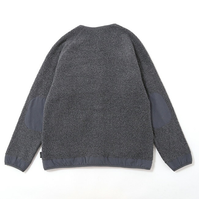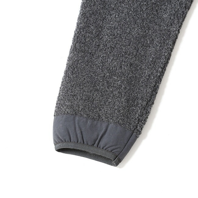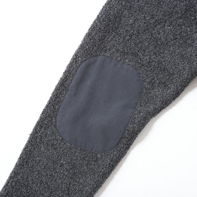 ウール素材ならではの温かみのある色味・肌触りとポリエステルによる速乾性を両立した素材です。袖口や裾など摩擦によって負荷がかかる部分にはナイロン素材の補強がされています。
