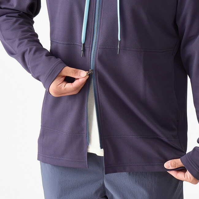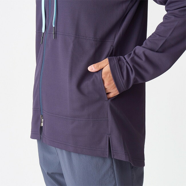 シンプルなデザインのフーディーですが、肌の表皮に悪影響を与える紫外線をカットし、肌内部の皮下組織に悪影響を与える近赤外線をカットすることで、シミ、そばかす、シワ、たるみ、日焼けといった肌の老化を軽減するというすごい機能を持っているんです。同時に疲労軽減の効果もあるので真夏のアルプス縦走における体力温存にもつながります。