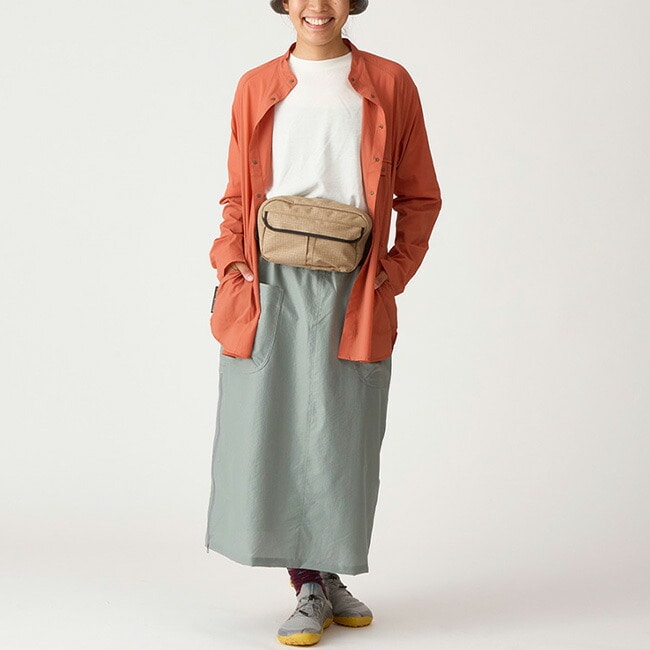 アクシーズクイン・エレメンツらしい大きめのサイドポケットは二つに仕切られ、グローブや手拭い、ハイキングマップ、行動食などを整理して収納可能。