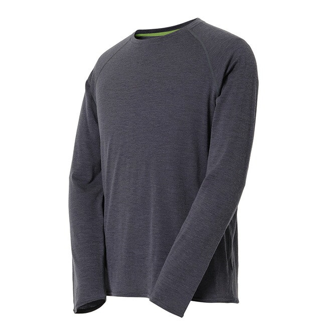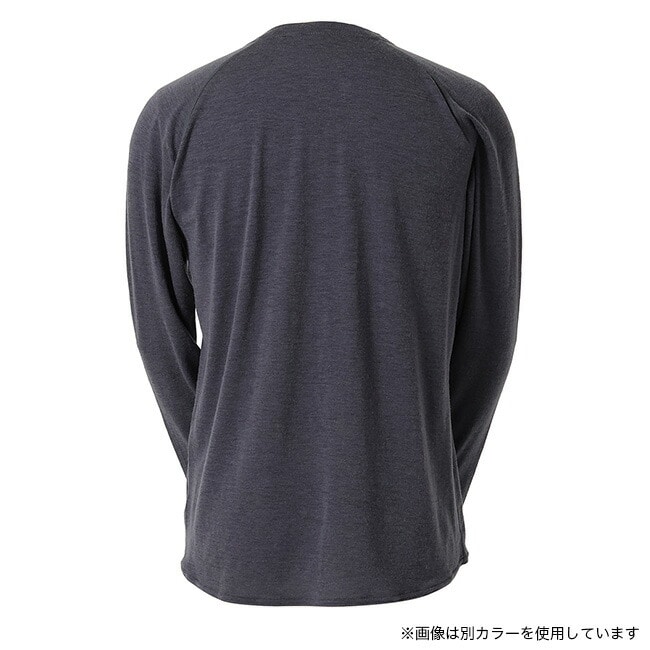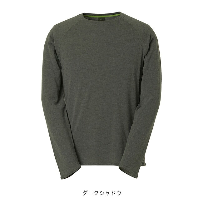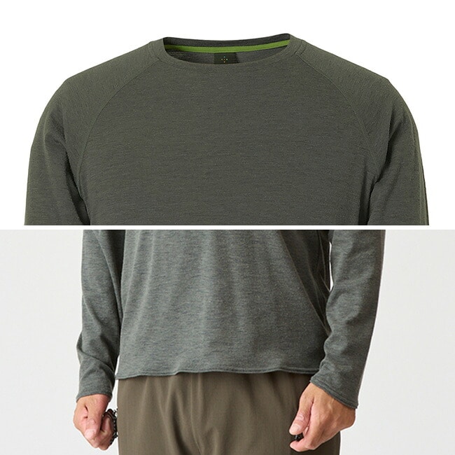 春夏向けベースレイヤー素材と同等、またはそれよりも軽いにもかかわらず、はるかにふくらみのある革新的なウール素材NUYARNを採用したロングスリーブティーシャツです。素材の良さを引き出すために敢えてシンプルなデザインを採用し、レイヤード時の肩まわりのごろつきをなくすためにラグランスリーブで仕上げています。