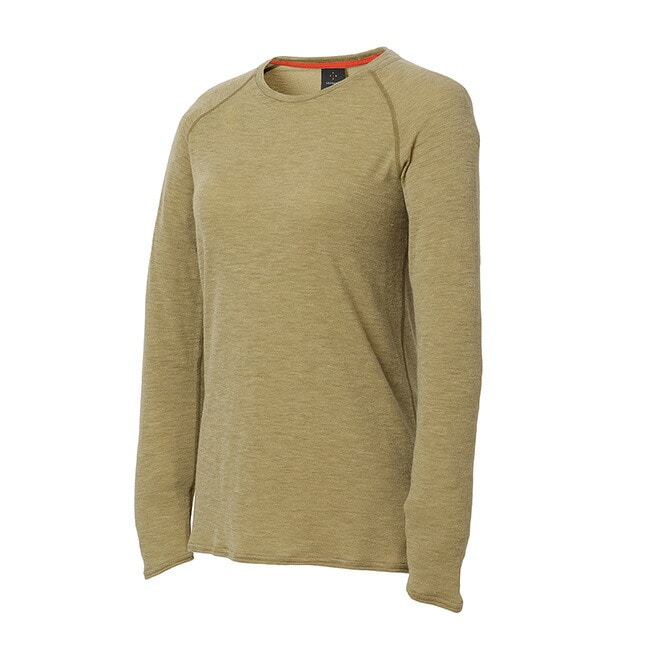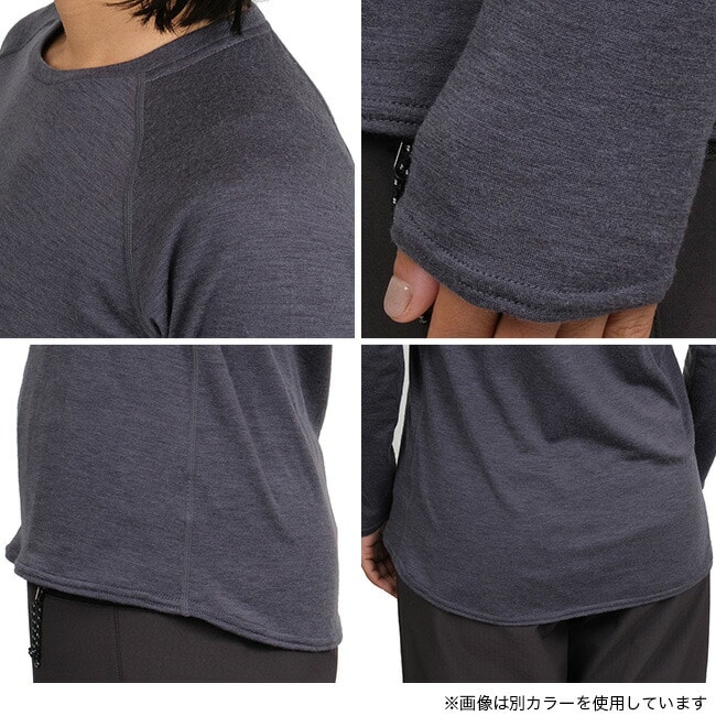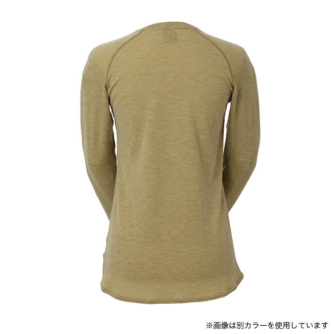 春夏向けベースレイヤー素材と同等、またはそれよりも軽いにもかかわらず、はるかにふくらみのある革新的なウール素材NUYARNを採用したロングスリーブティーシャツです。素材の良さを引き出すために敢えてシンプルなデザインを採用し、レイヤード時の肩まわりのごろつきをなくすためにラグランスリーブで仕上げています。