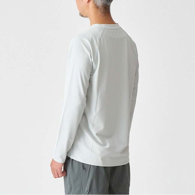 シンプルなデザインながら、高いUVカット機能を備えたロングスリーブTシャツ。紫外線に加え、近赤外線にも着目した素材を採用し、強い日差しから肌を守ります。