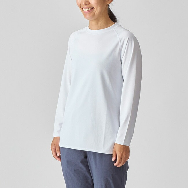 シンプルなデザインながら、高いUVカット機能を備えたロングスリーブTシャツ。紫外線に加え、近赤外線にも着目した素材を採用し、強い日差しから肌を守ります。