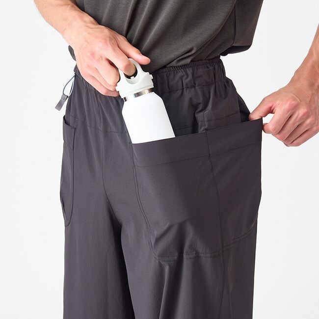 大き目のサイドポケットは二つに仕切られているので、グローブ、手拭い、ハイキングマップ、行動食などを上手に振り分けて収納でき、手を下ろした位置にちょうど良く配置されているので自然な動作でアクセスすることができます。
