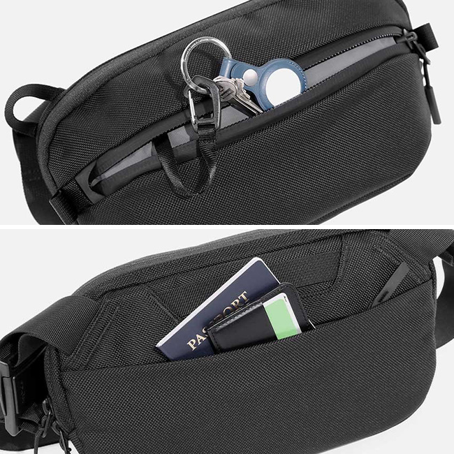 毎日必需品をスマートに収納できる、多目的のスリングバッグ。