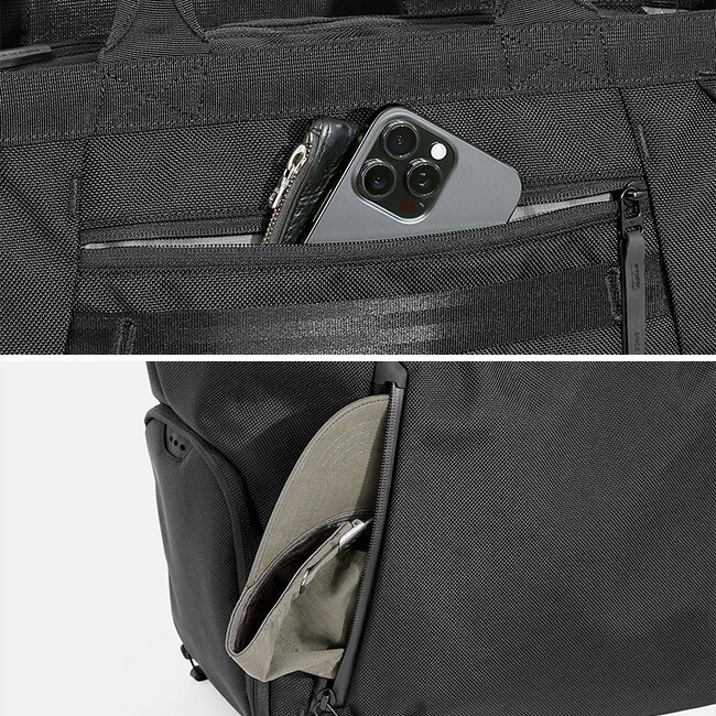 素材には耐久性の高い1680D CORDURA®バリスティックナイロンを使用し、撥水性と強度に優れ、旅先やアウトドアでも安心。