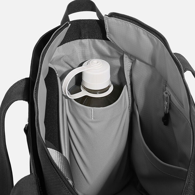 さらに16インチまで対応するパッド入りPCポケットや、通勤・旅行に便利な小物収納ポケット、ウォーターボトルホルダーも装備しています。