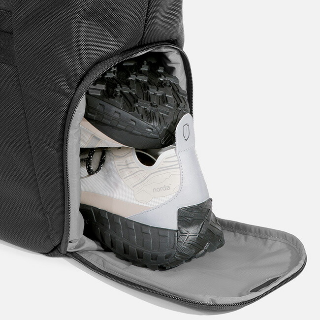 通気性のあるシューズコンパートメント(メンズ ランニングシューズ12サイズまで収納可能)