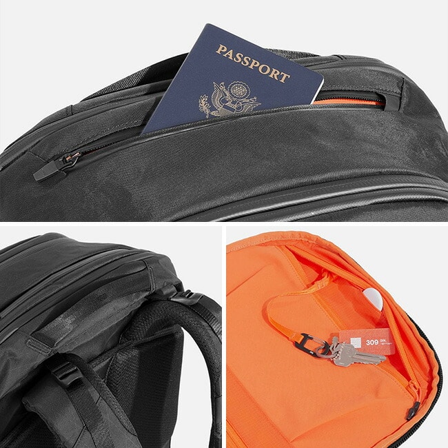 さらにスマートトラッカー用の隠しポケットやラゲージハンドル用パススルーなど、旅行時に便利な機能も充実しています。