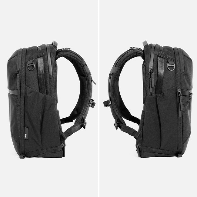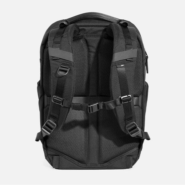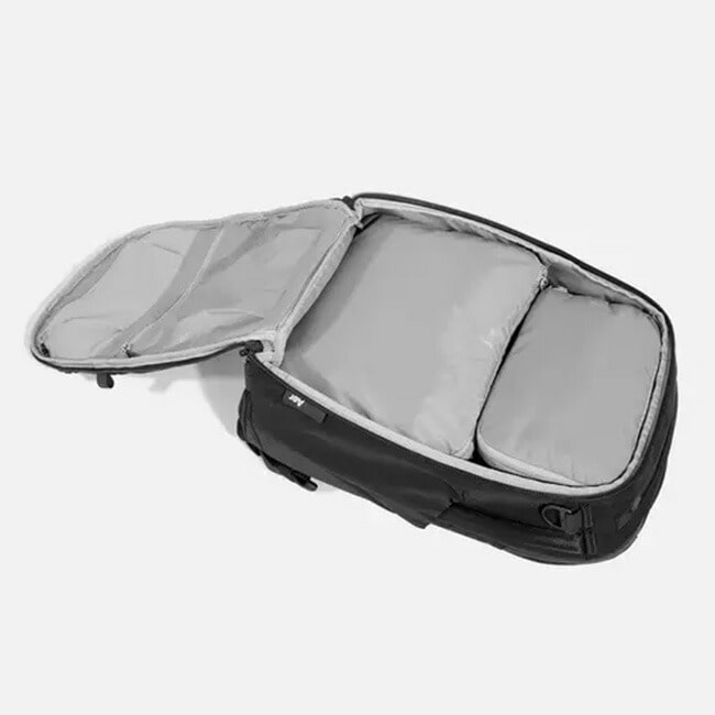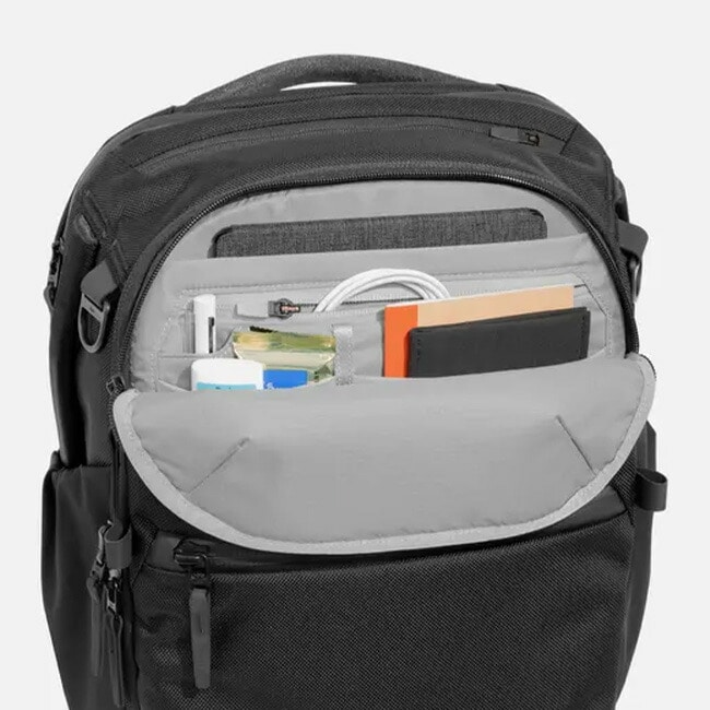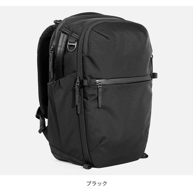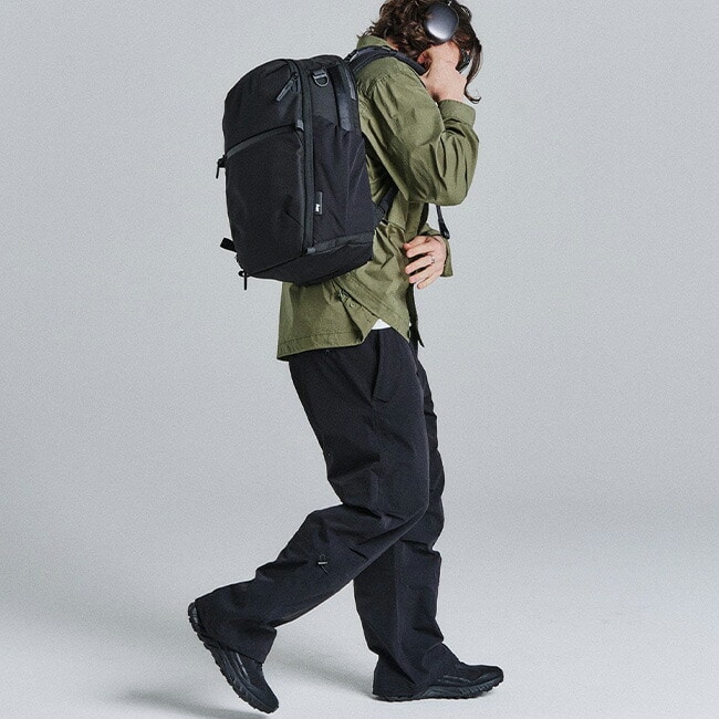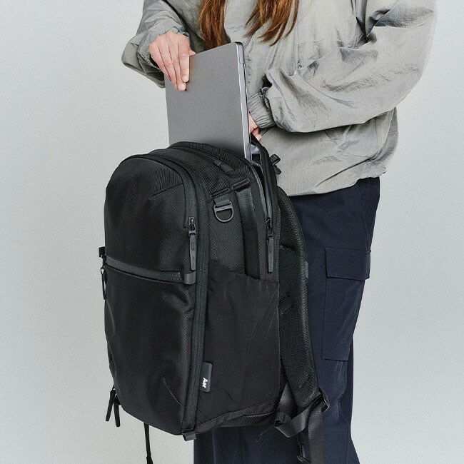 コンパクトながら高い収納力と耐久性を兼ね備えたトラベルバックパック。
